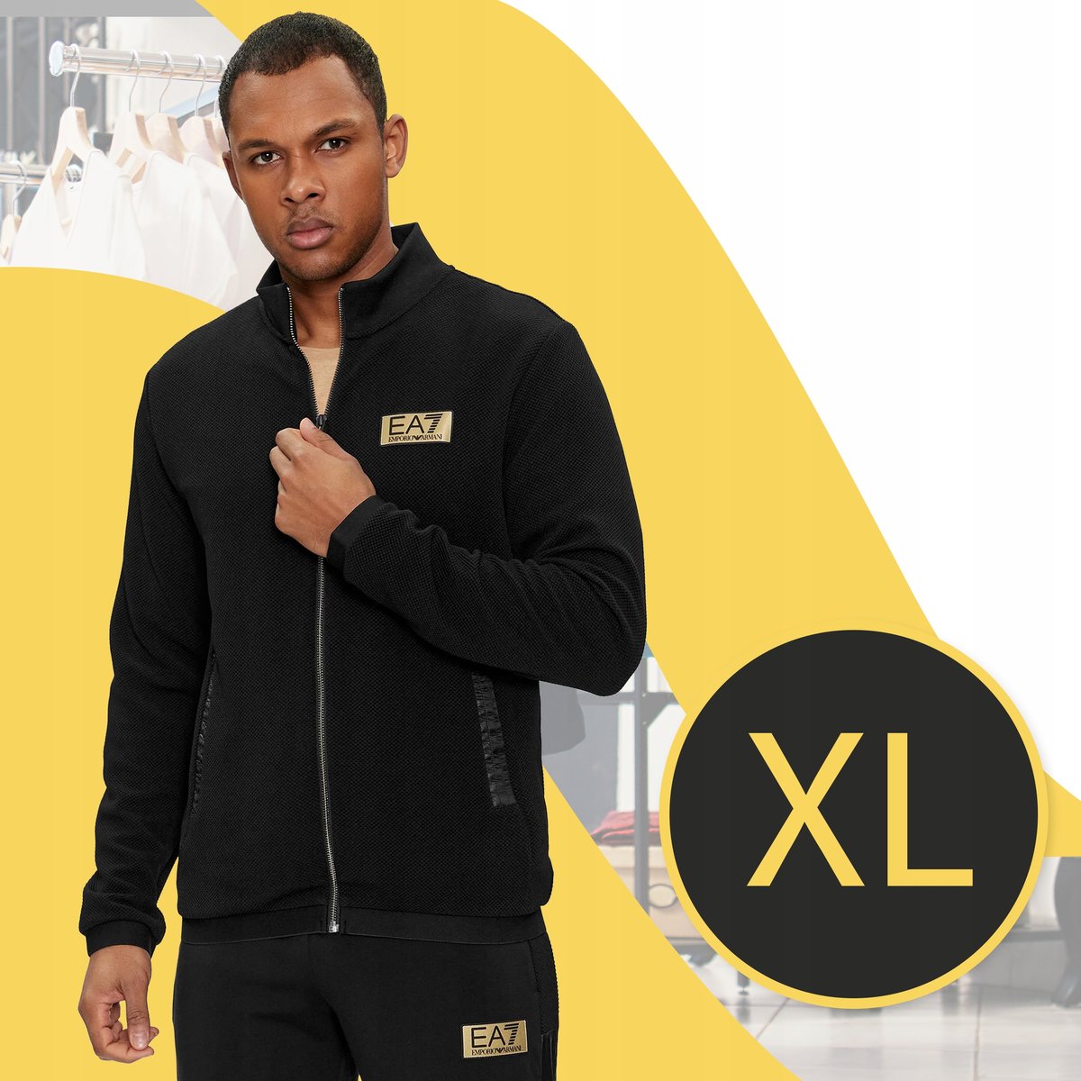 Emporio Armani EA7 Czarna Bluza Poliester Stójka Sportowe logo zamek r.XLEmporio Armani EA7 Czarna Bluza Poliester Stójka Sportowe logo zamek r.XL w kolorze czarnym to wybór łączący w sobie ...