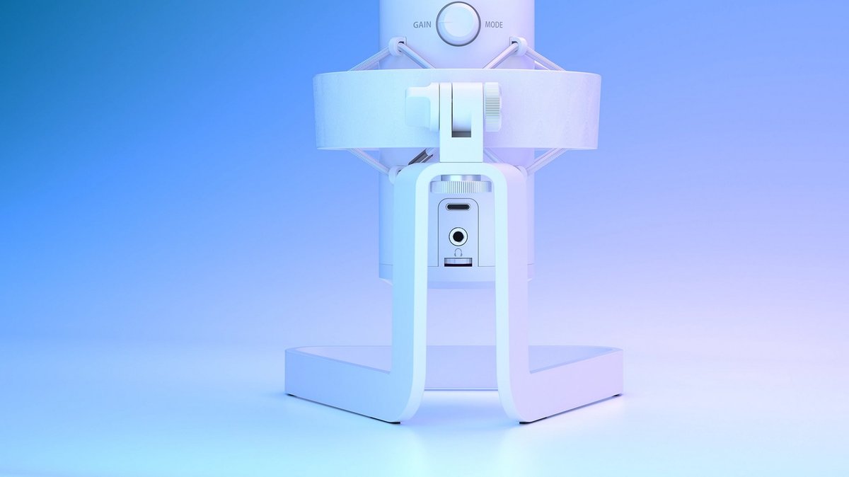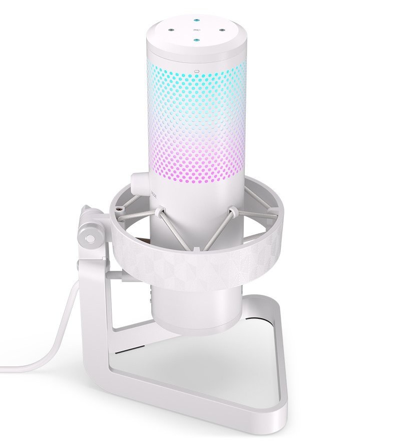 Do wyboru masz 6 rodzajów podświetlenia mikrofonu: zielony, błękitny,niebieski, różowy, czerwony i żółty. Jest też opcja ustawienia tęczowej poświaty, która pulsuje zmieniającymi się kolorami albo zupełnego wyłączenia podświetlenia. Wszystko to ustawiasz za pomocą przycisku na spodzie obudowy.