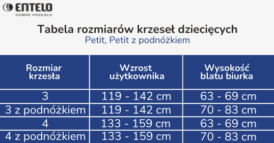 Model Petit dopasowany do biurek o wysokości 63-69 cm.