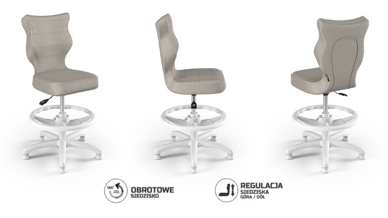 | Nazwa: | Entelo, Krzesło do biurka dla dziecka dopasowane do wzrostu 119-142 cm, model Petit z podnóżkiem kolor szary obrotowe |
