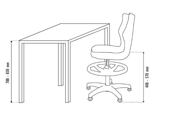 Model Petit z podnóżkiem dopasowany do biurek o wysokości 70-82 cm.