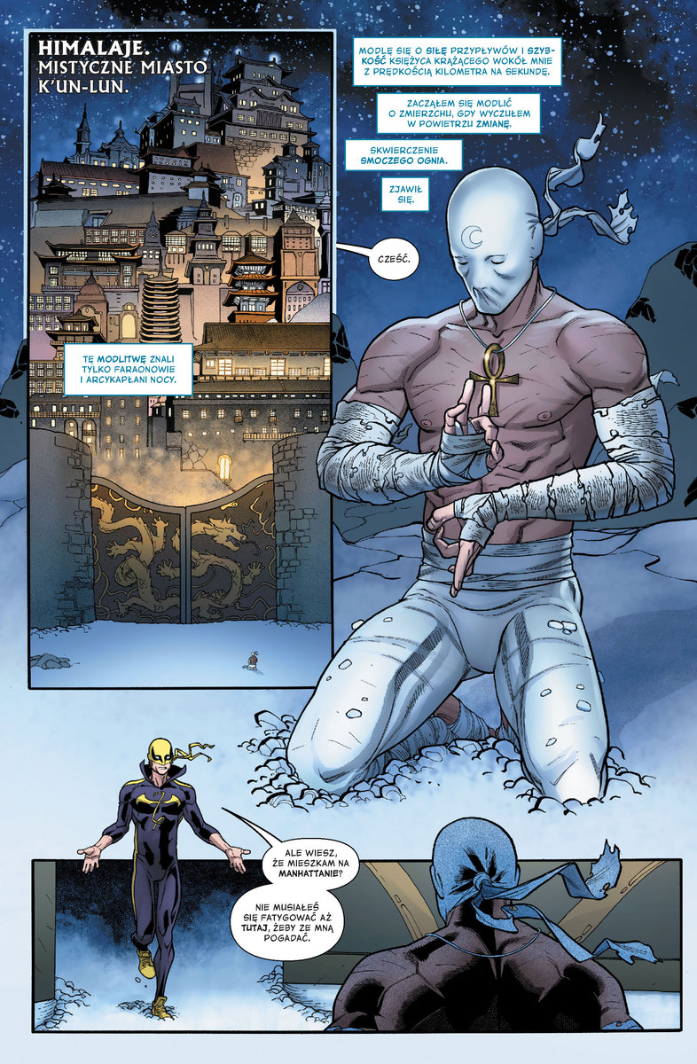Tony Stark, uwięziony w epoce lodowcowej, traci nie tylko swoje cudowne wynalazki, ale i zmysły. Czy po zachodzie słońca, w godzinie diabła, utraci również duszę? Tymczasem we współczesności Avengers zmagają ze swoim byłym sprzymierzeńcem – groźniejszym od wszystkich wrogów! To przez niego na całym świecie ożywają mumie, a ich tajemnicze armie maszerują przy świetle księżyca od Wakandy po Nowy Jork, zwiastując świt nowej ery – ery Khonshu!