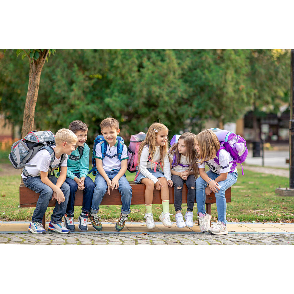 - Przestronne wnętrze: Główna komora wyposażona jest w inteligentnie podzielone przegrody, które ułatwiają dzieciom porządkowanie przyborów szkolnych. Wszystkie zeszyty i książki pasują idealnie. Butelkę na wodę (do 0,7 l) i parasol można łatwo spakować w bocznych kieszeniach