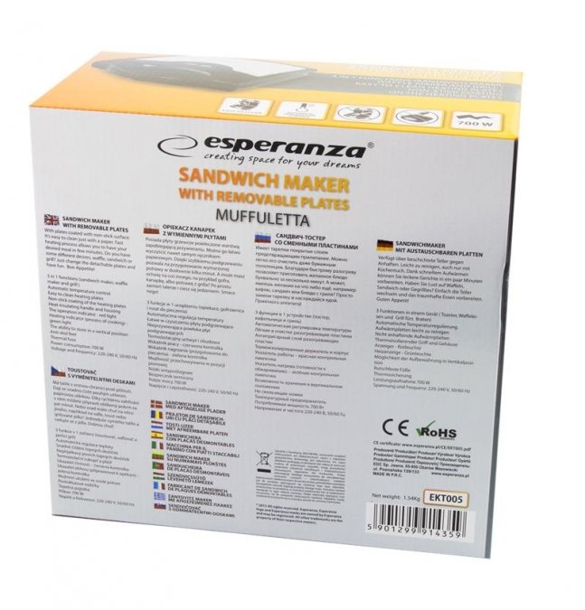 | Nazwa: | Opiekacz ESPERANZA Muffuletta EKT005 |