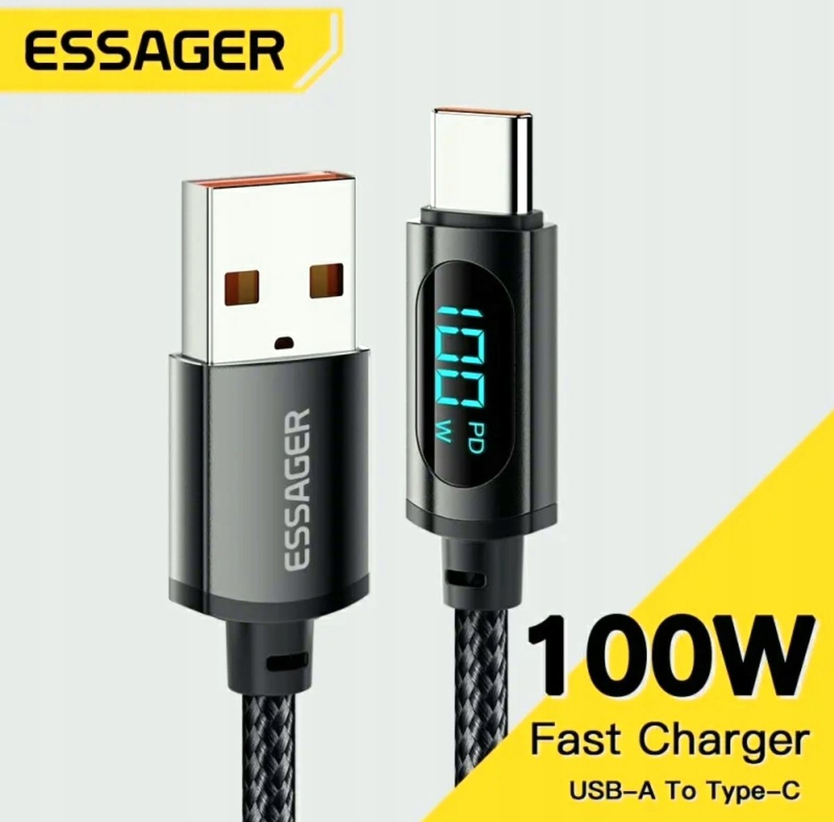 | Nazwa: | Essager 7A kabel 1m. USB A do C 100W szybki przewód USB-C LCD, wyświetlacz |