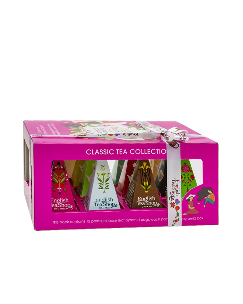 ETS Classic Tea Collection to elegancki, pięknie zapakowany zestaw wybornych herbacianych kompozycji od uznanego angielskiego producenta. W środku znajdziemy 12 delikatnych piramidek zawierających klasyczne smaki: