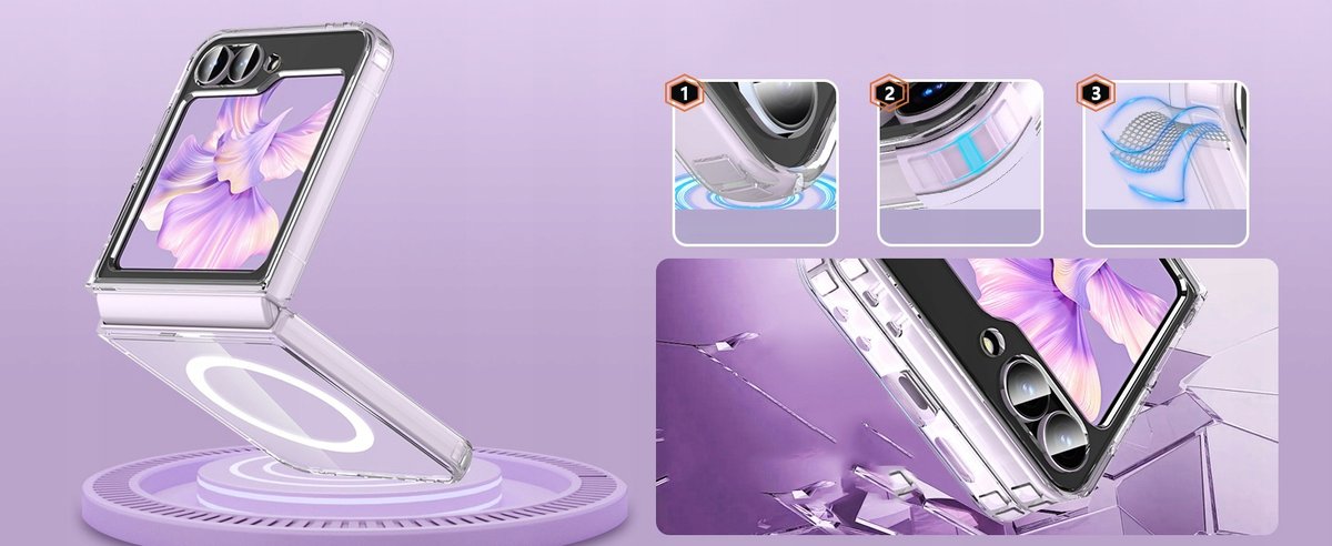 ⭐ Etui do SAMSUNG GALAXY Z FLIP 6 WZMACNIANE 360° do MagSafe Clear Case + 2 x SZKŁO
