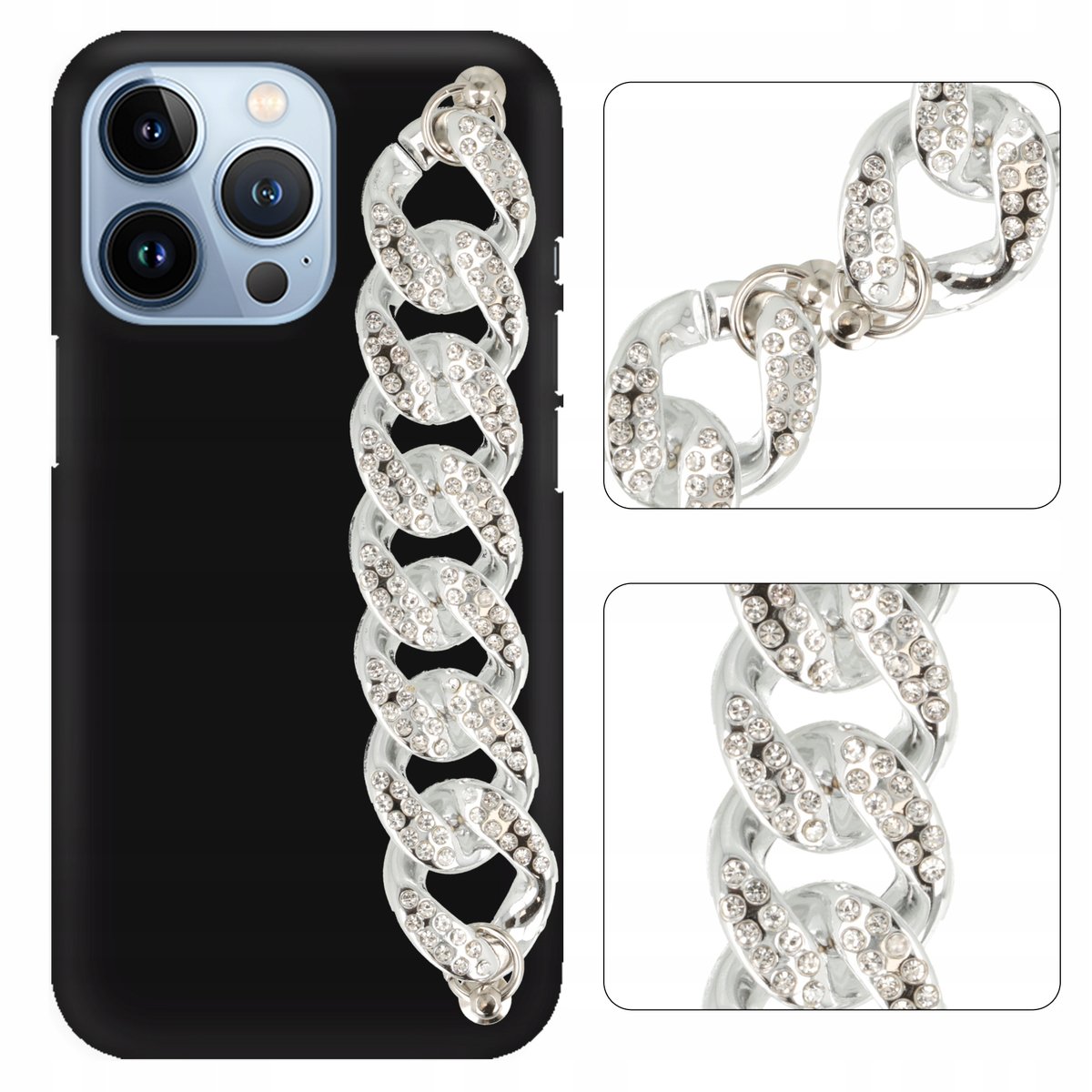WYJĄTKOWE ETUI NA KAŻDY DZIEŃ! ✨ ETUI MATOWE Z ŁAŃCUSZKIEM dedykowane do: HUAWEI Y6P ✨ ⭐ KOLOR ETUI: CZARNY ⭐ ⭐ KOLOR ŁAŃCUSZKA: SREBRNY Z CYRKONIAMI⭐ Piękna obudowa na telefon z ...