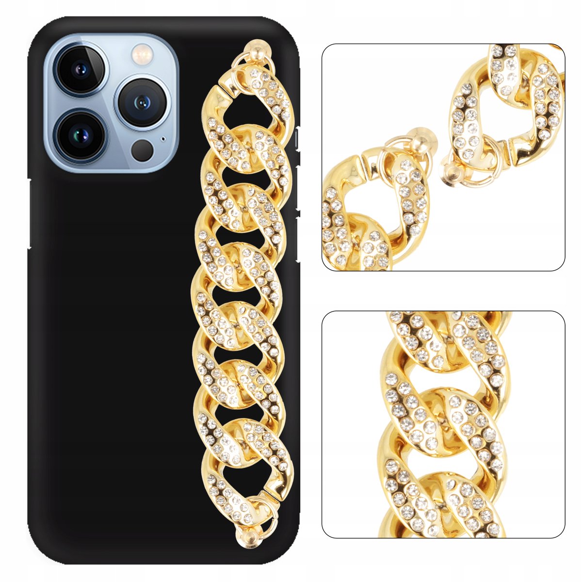 Do etui zamocowany jest dekoracyjny łańcuszek, pełniący również funkcję uchwytu na dłoń. Całość dopasowana jest tak, że zapewnia niepowtarzalny i piękny wygląd urządzenia.