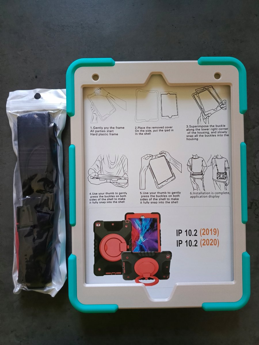[Zdejmowany pasek na ramię] Przymocuj regulowany pasek na ramię do dowolnych dwóch otworów osłony ochronnej i możesz zawiesić tablet za zagłówkiem samochodu, jest również łatwy do przenoszenia.