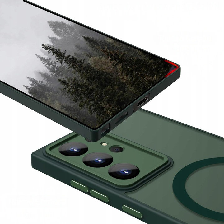 ⭐Etui ProFlo do Samsung S24 Ultra do MagSafe.⭐Kolor: zielony - matowy, półprzeźroczyste.⭐Osłona aparatów. ✅Ochrona aparatu w postaci wbudowanych w etui szkiełek osłaniających
