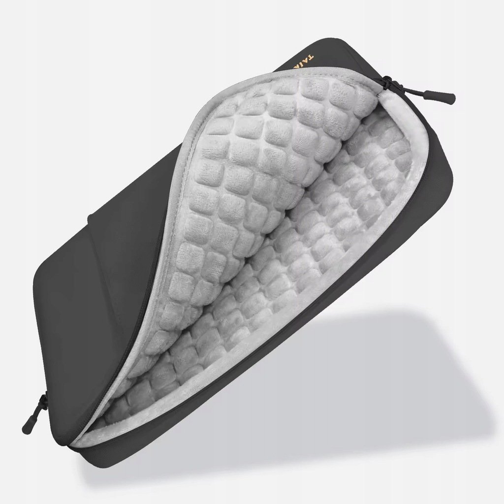 Etui wykonane z materiału wodoodpornego wygląda estetycznie, dobrze chroni laptopa dzięki miękkiej wyściółce w środku.