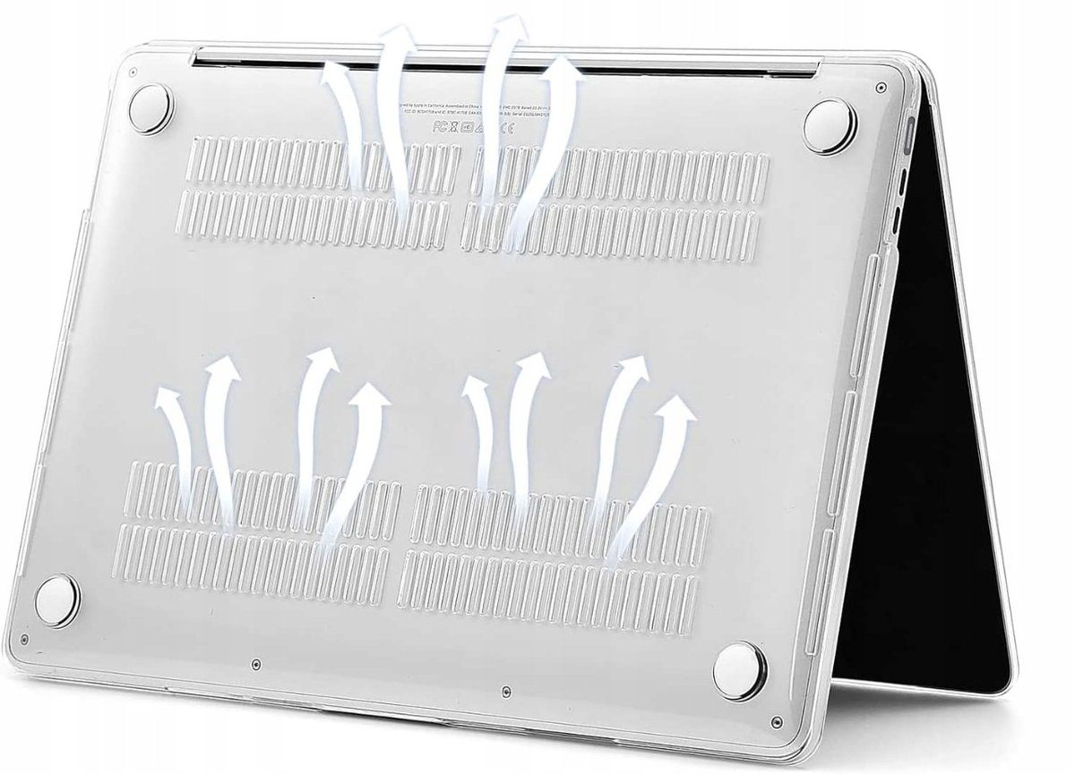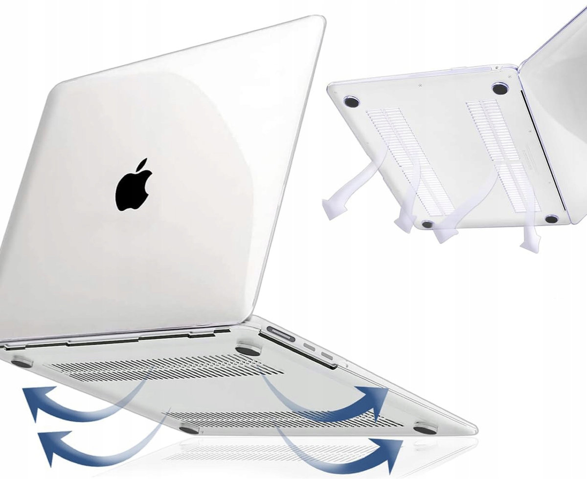 Specjalnie zaprojektowane otwory na spodzie obudowy zapewniają odpowiednią cyrkulację powietrza, co pomaga utrzymać optymalną temperaturę MacBooka i zapobiega przegrzewaniu się urządzenia.