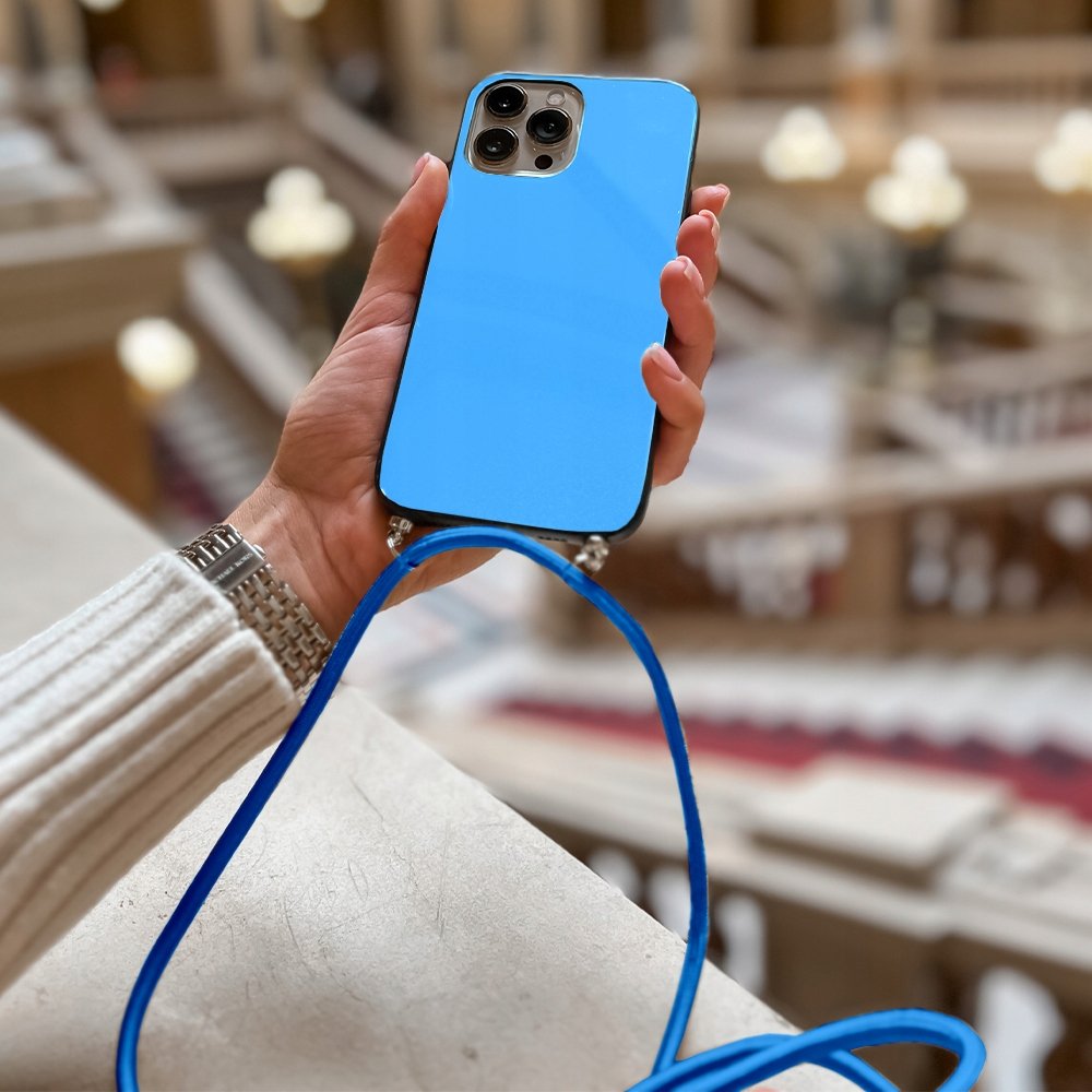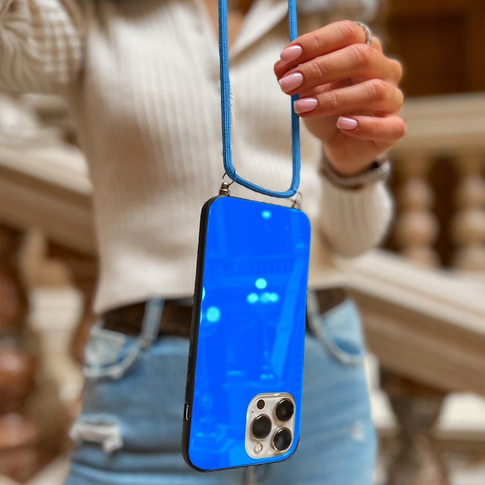 ETUI NA KAŻDY DZIEŃ! ETUI SZKLANE CROSS GLAM na sznurku dedykowane do telefonu IPHONE 13 MINI Kolor sznurka: NIEBIESKI Wygodne i praktyczne etui Cross Glam! ...