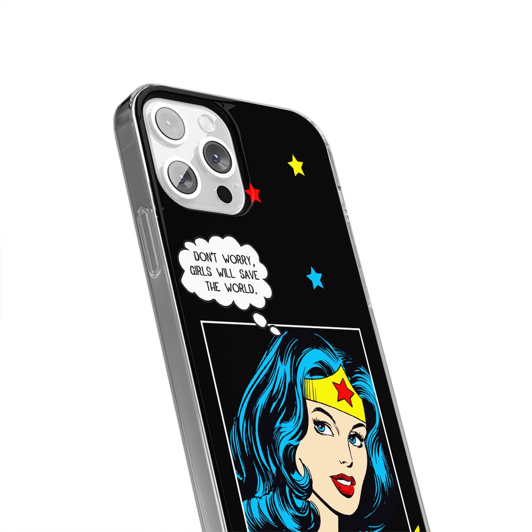 • Unikalny design – podkręci wygląd telefonu oraz podkreśli Twój wyjątkowy styl i indywidualizm. Na etui znajduje się grafika w stylu pop art przedstawiająca Wonder Woman oraz napis "Don't worry, girls will save the world".