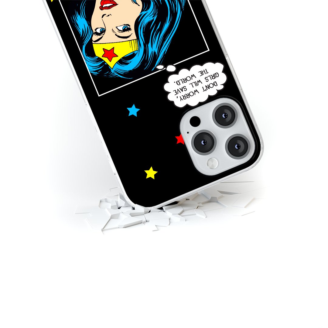 • Unikalny design – podkręci wygląd telefonu oraz podkreśli Twój wyjątkowy styl i indywidualizm. Na etui znajduje się grafika w stylu pop art przedstawiająca Wonder Woman oraz napis "Don't worry, girls will save the world".