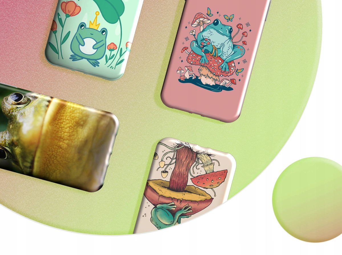 Żaby na etui telefonu to, obok grzybów (szczególnie muchomorów), jeden z najpopularniejszych trendów ostatnich miesięcy. Prawdziwe zdjęcia żab, żaby w stylu hippie czy słodkie żabki w koronie – to wszystko i wiele więcej znajdziesz w naszej ofercie. Wybierz swój ulubiony wzór, a my wydrukujemy go na etui Twojego telefonu.