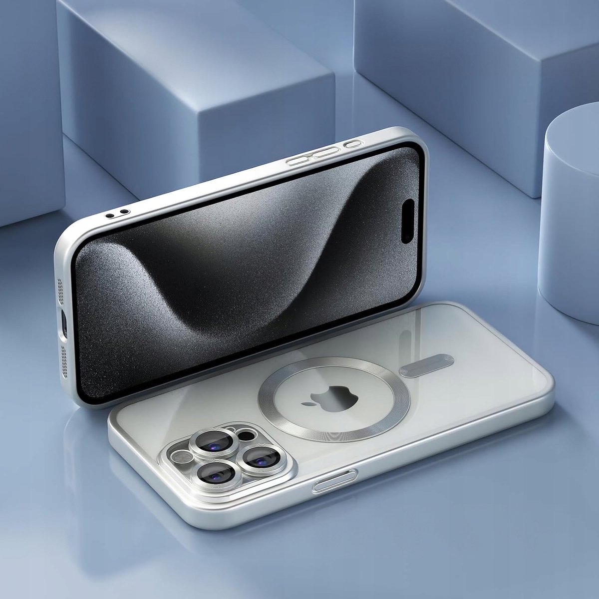 Etui do iPhone 15 Pro Max 6,7" do MagSafe SREBRNY MAT - TITANUM SILVER, case przezroczysty. Ochrona aparatu, różne kolory ramek.
