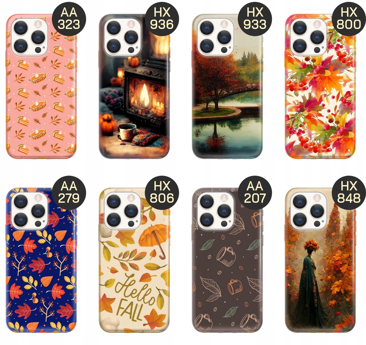 Set Jesień to w głównej mierze stonowane kolory w odcieniach brązu, musztardy, bordo i zgaszonej zieleni. Dla osób, które lubią takie kolory to dobry pomysł na etui na telefon, tak naprawdę o każdej porze roku. Sprawdź jeden z naszych wzorów!