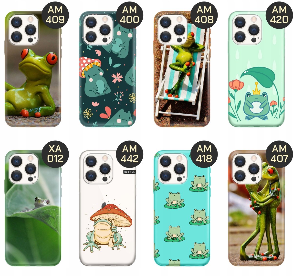 Żaby na etui telefonu to, obok grzybów (szczególnie muchomorów), jeden z najpopularniejszych trendów ostatnich miesięcy. Prawdziwe zdjęcia żab, żaby w stylu hippie czy słodkie żabki w koronie – to wszystko i wiele więcej znajdziesz w naszej ofercie. Wybierz swój ulubiony wzór, a my wydrukujemy go na etui Twojego telefonu.