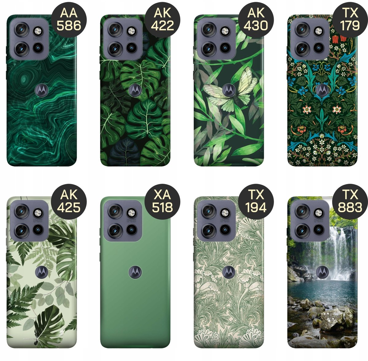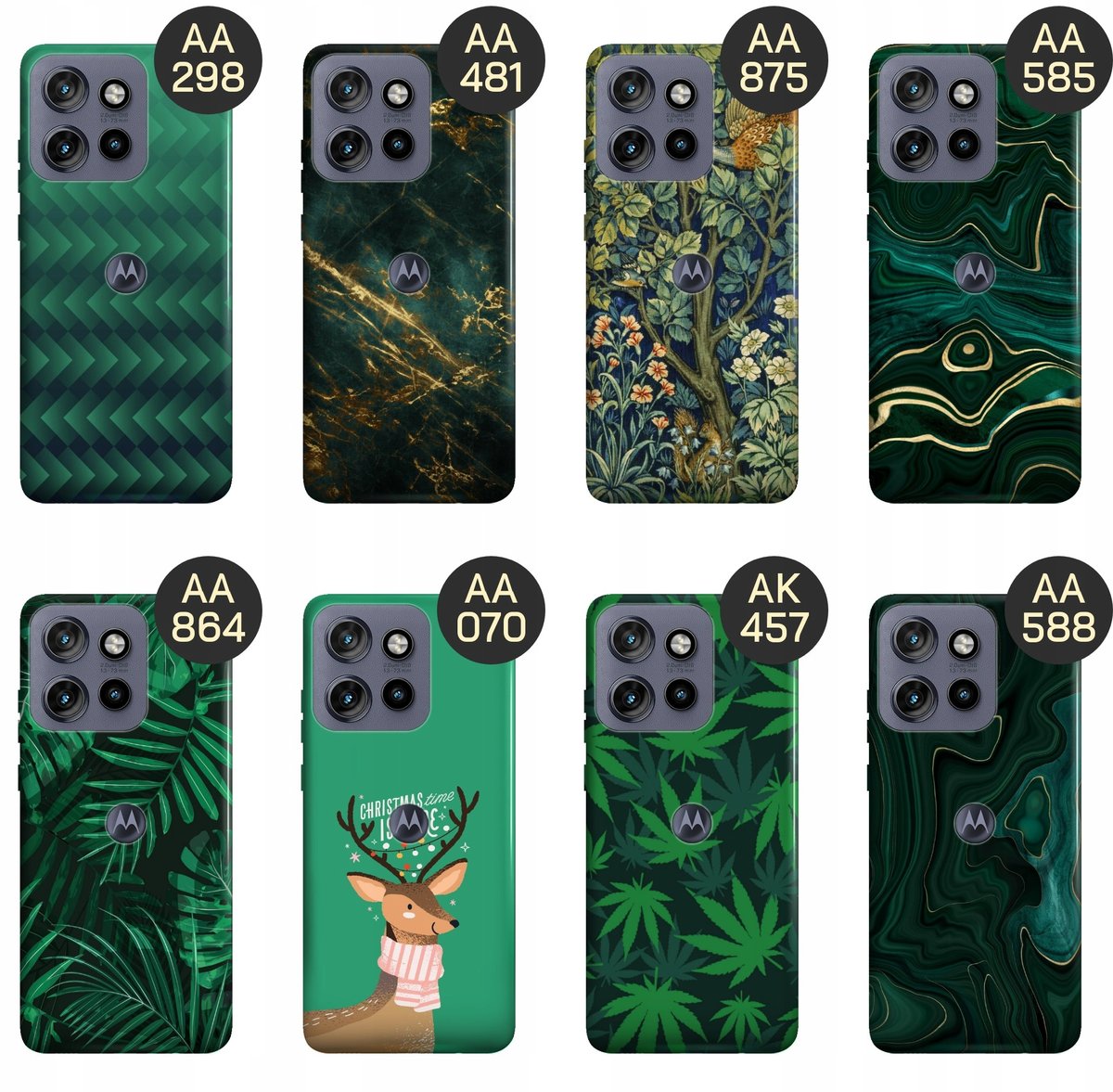 Set Zielone to wzory w zielonym kolorze – minerały, marmury, abstrakcyjne kształty, soczyście zielone liście – w sam raz dla miłośników tego koloru. Zobacz, który wzór przypadnie Ci do gustu, a my wydrukujemy go na etui Twojego telefonu.