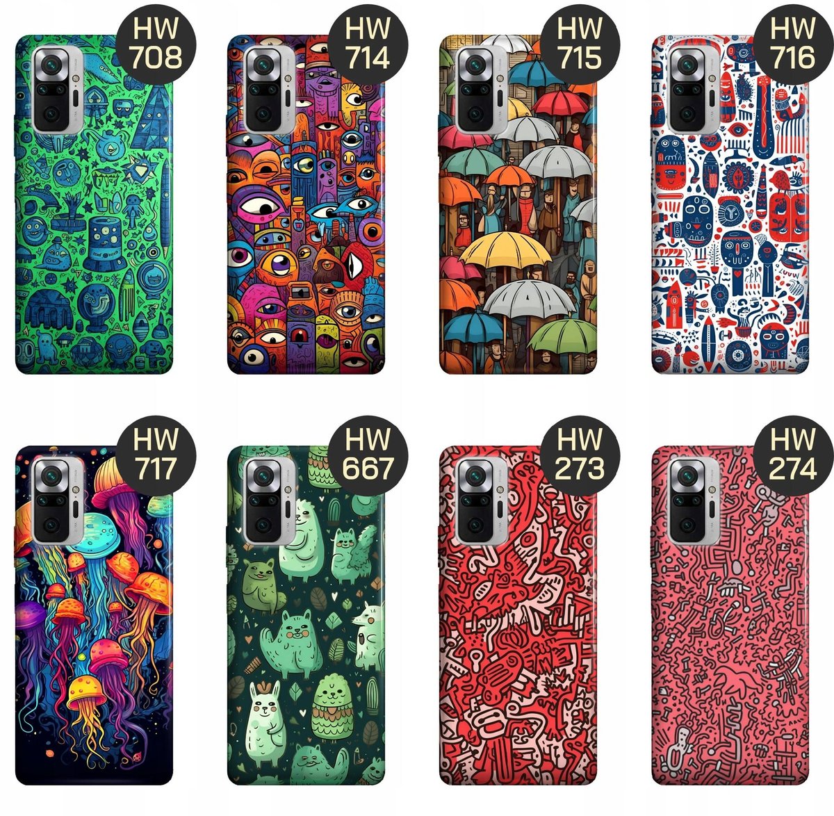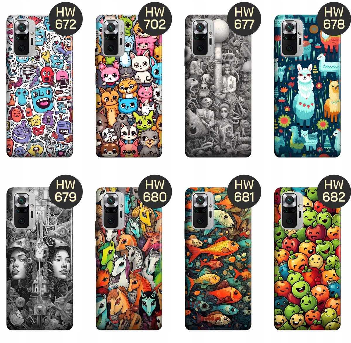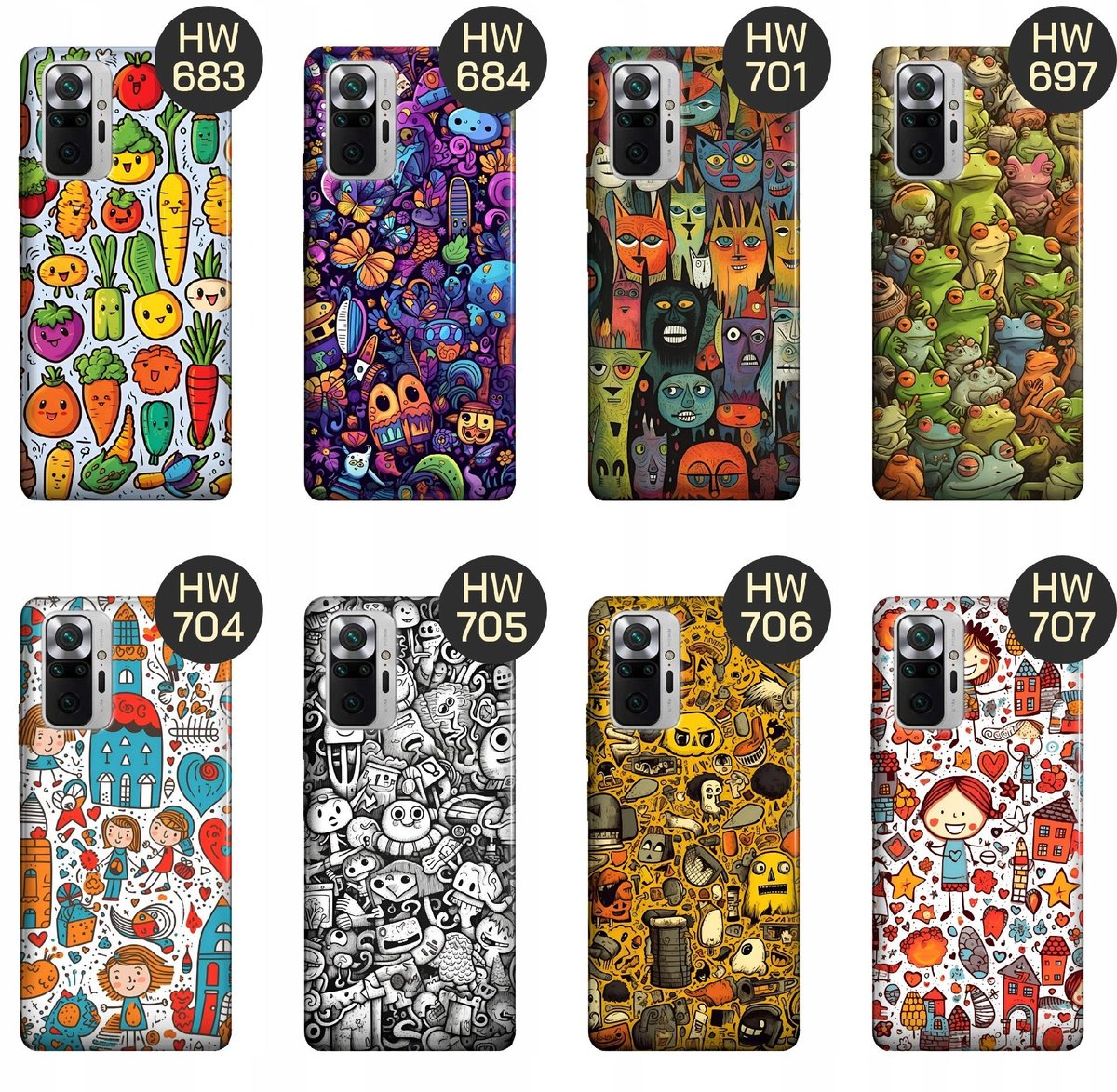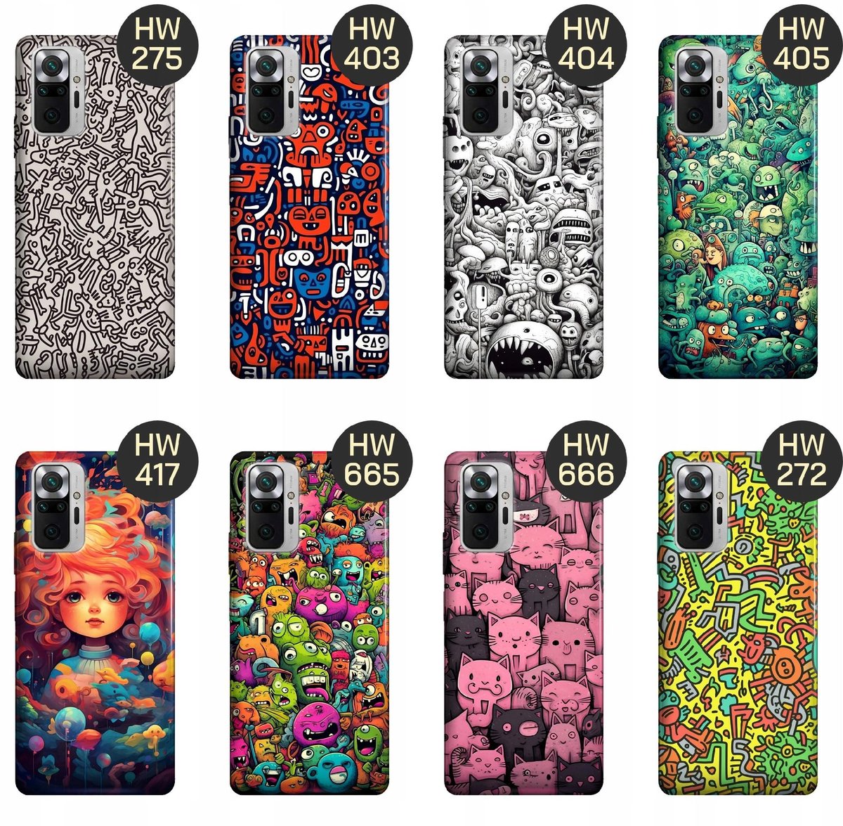 Kolekcja grafik z motywem doodle na etui smartfonów oferuje wiele różnych wzorów i kolorów, abyś mógł wybrać ten, który najlepiej odpowiada Twojemu stylowi i preferencjom. Dodają one odrobinę zabawy i radości do codziennego użytkowania telefonu.
