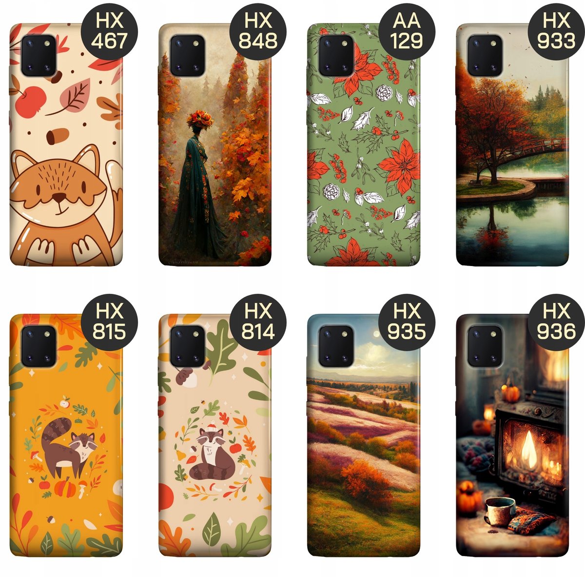 Set Jesień to w głównej mierze stonowane kolory w odcieniach brązu, musztardy, bordo i zgaszonej zieleni. Dla osób, które lubią takie kolory to dobry pomysł na etui na telefon, tak naprawdę o każdej porze roku. Sprawdź jeden z naszych wzorów!