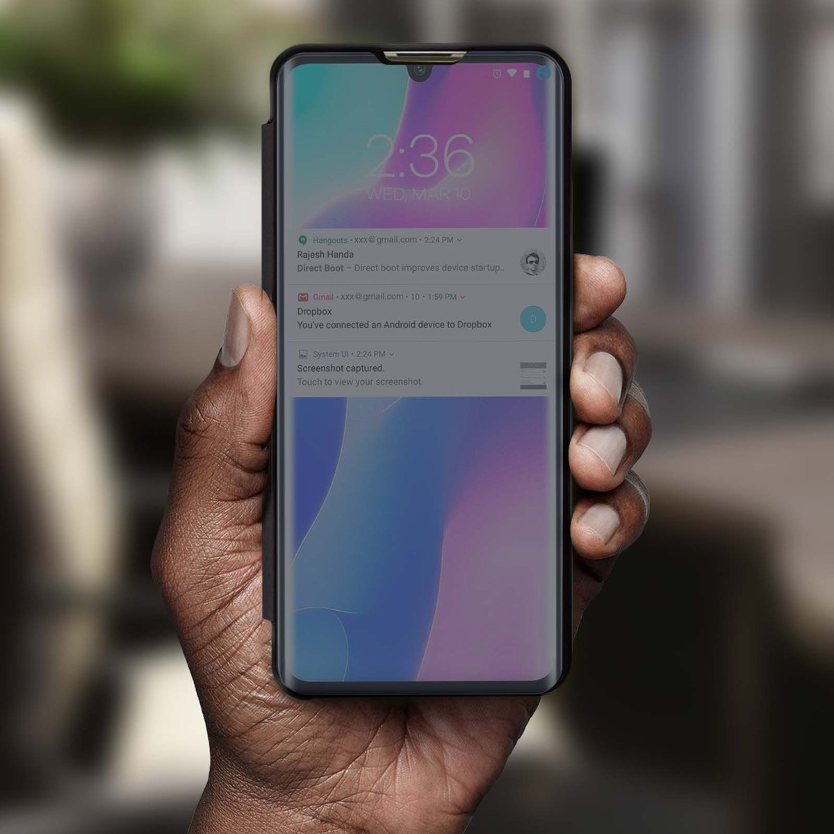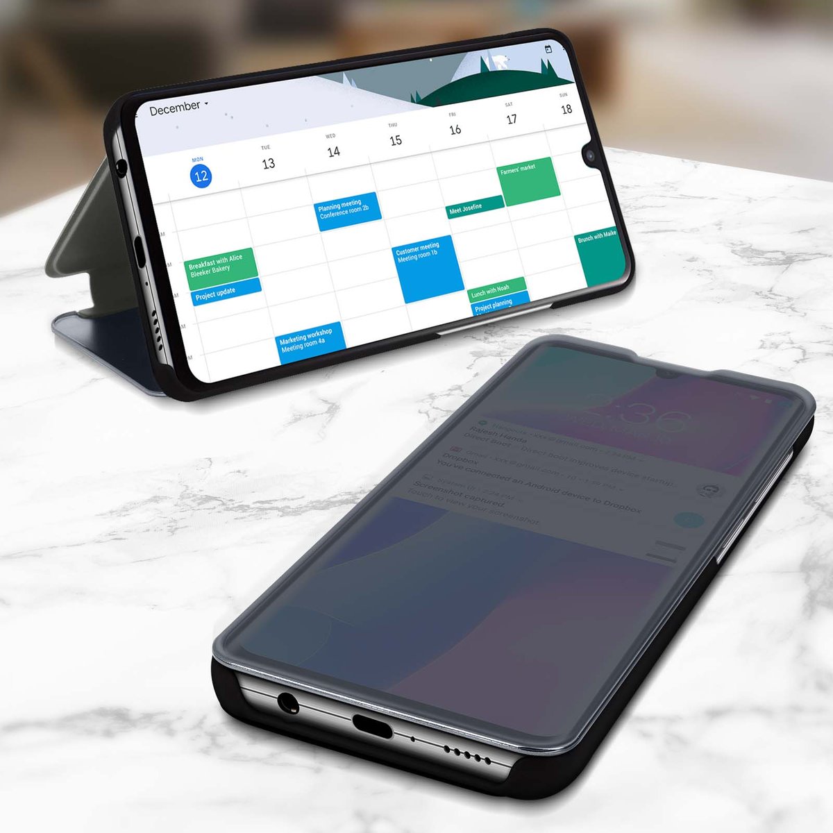 Etui do Xiaomi Mi Note 10 Lite z efektem lustra. Przezroczysta zakładka, aby zobaczyć powiadomienia, gdy ekran włączy się i zamieni się w lustro w trybie gotowości. Pełna funkcja ochrony i wsparcia.