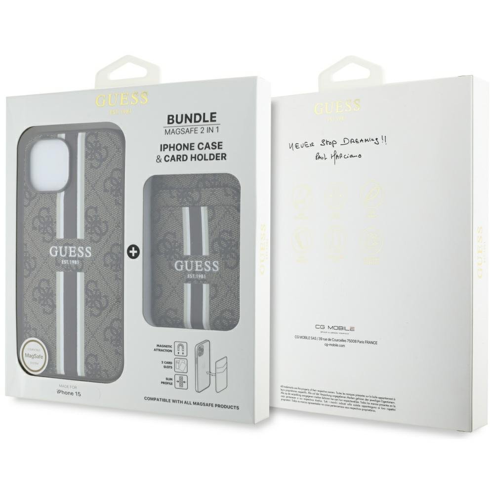 | Nazwa: | Etui Guess 4G Stripes z portfelem Magsafe do iPhone 15 brązowy |