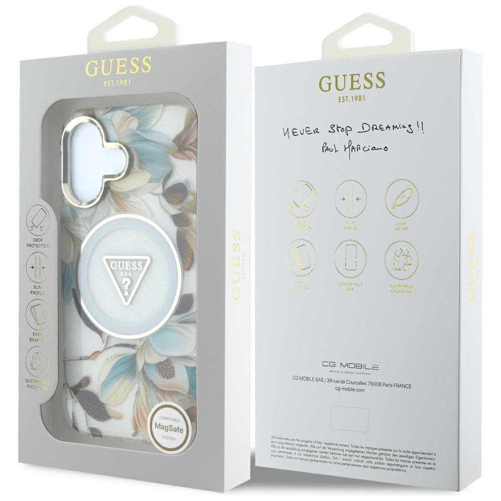 Etui Guess Glitter Flowers Triangle Buttons MagSafe