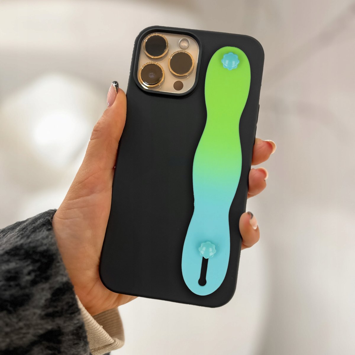 Właśnie zrecenzowałem Etui Matowe Czarne Do Iphone 13 Pro Max Z Paskiem Ombre Zielony Uchwyt