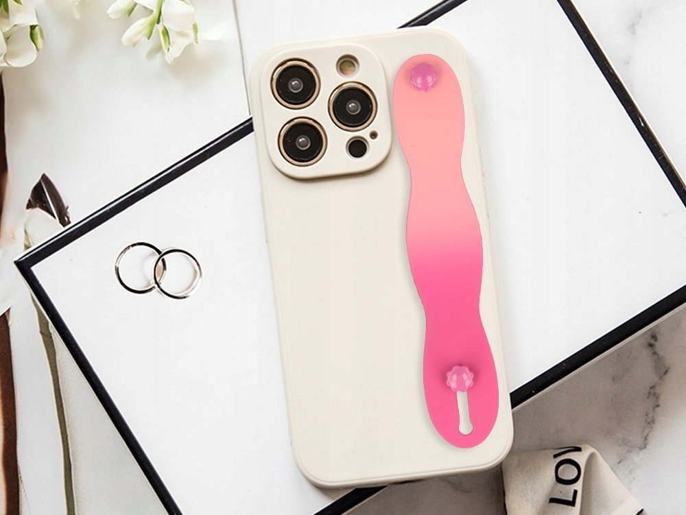 MATOWE ETUI z PASKIEM NA DŁOŃ dedykowane do IPHONE 13 PRO MAX Kolor etui: ECRU Kolor paska: RÓŻOWY SMOOTH UCHWYT ETUI Z UCHWYTEM MATOWY CASE UCHWYT OMB ...