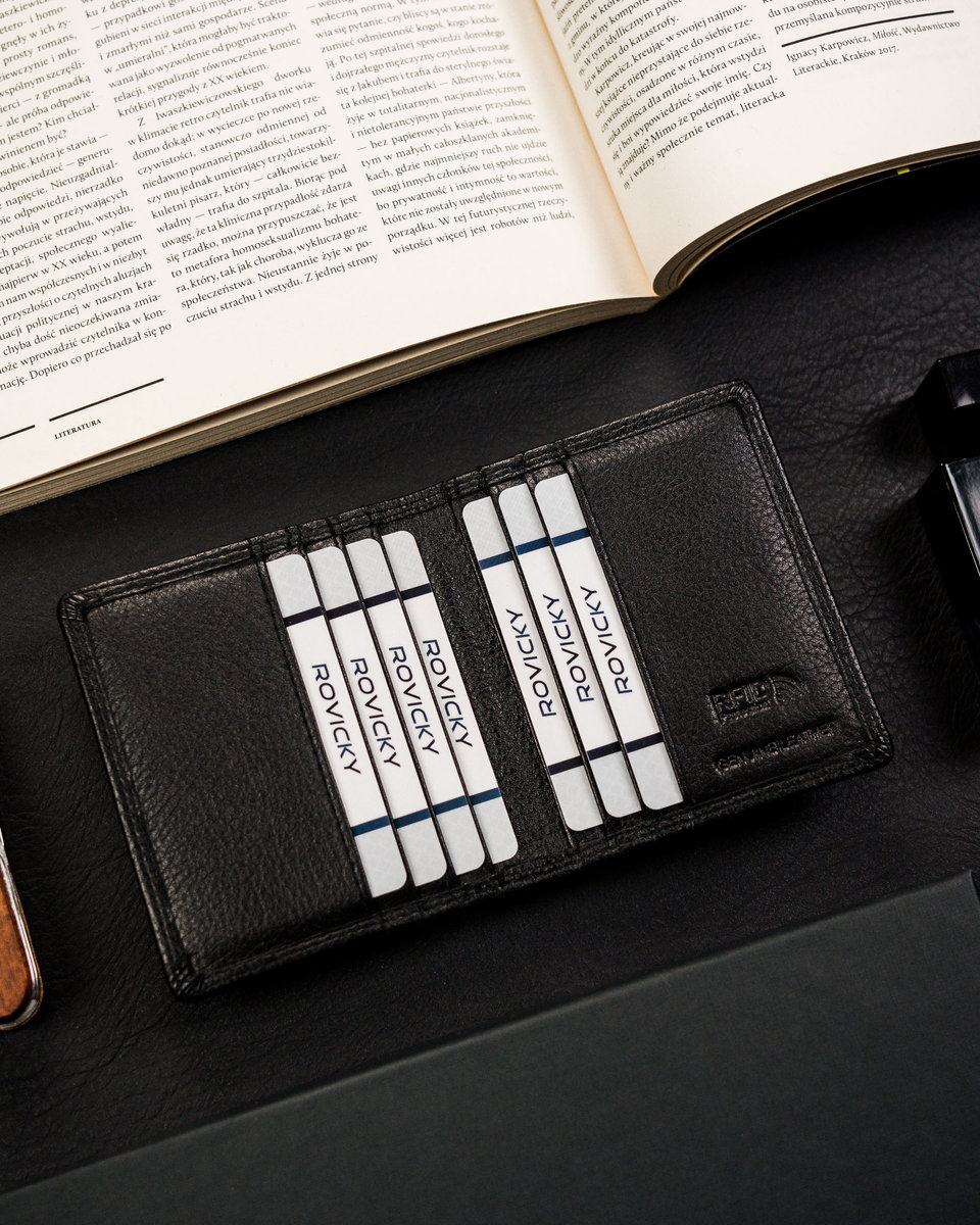 | Nazwa: | Etui na karty i dokumenty czarne pionowe bez zapięcia 4U CAVALDI slim rozbudowane i pojemne pudełko prezentowe ochrona RFID STOP |