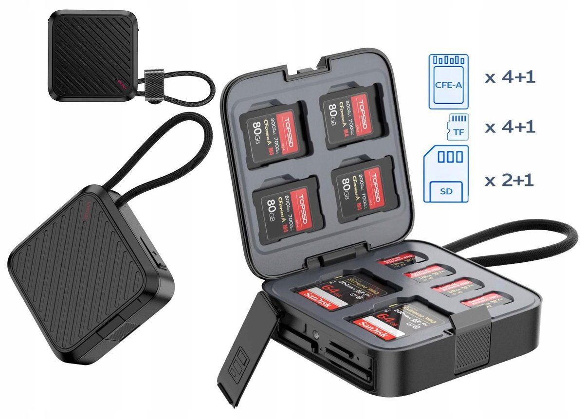 pomieścić 13 kart łącznie: 5 kart MicroSD - TF / 5 kart CFA / 3 karty SD