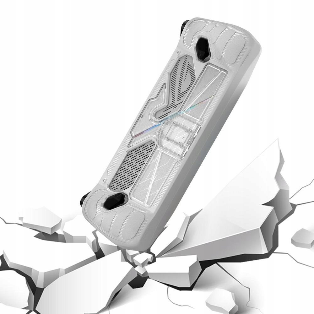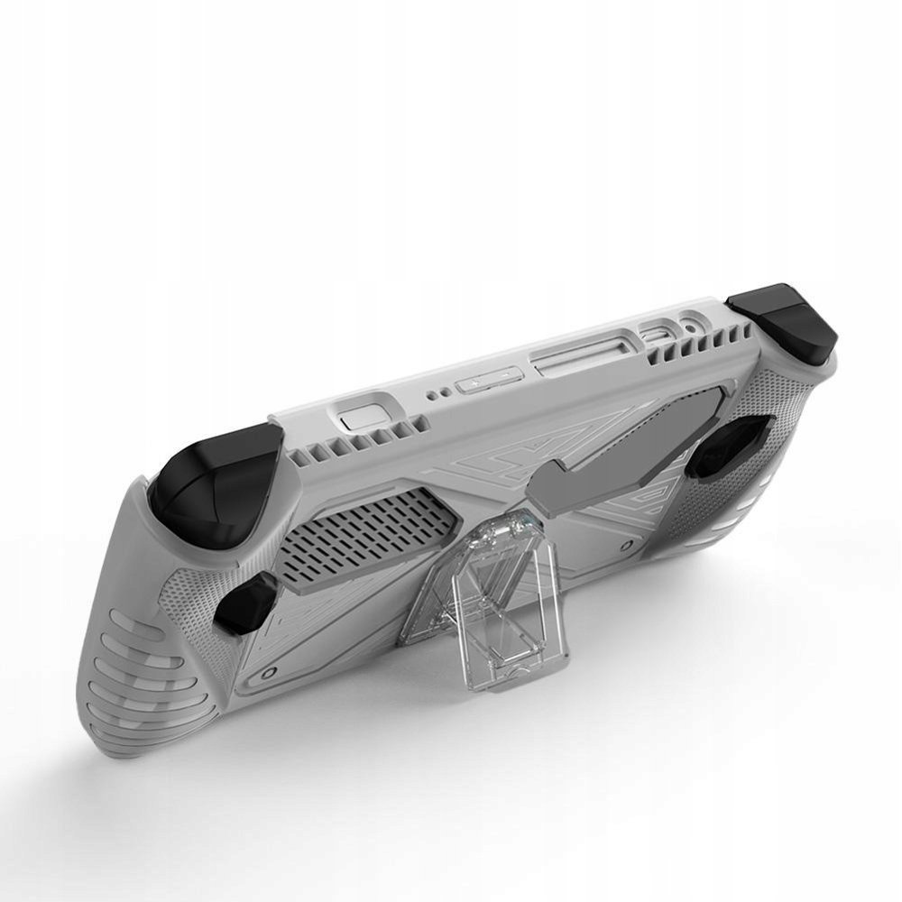 Innowacyjne etui o ergonomicznym kształcie, wykonane z wytrzymałego i tworzywa TPU i plastiku, odpornego na ścieralność. Obudowa jest idealnie dopasowana do urządzenia, w pełni funkcjonalna, nie ogranicza dostępu do portów zewnętrznych i skutecznie chroni urządzenie przed zarysowaniami czy upadkami. Tylna część obudowy posiada wycięcia, które ułatwiają chłodzenie konsoli podczas użytkowania. Dodatkowo etui posiada funkcjonalną podstawkę, dzięki której możemy wygodnie oglądać ulubione filmy i korzystać z multimediów.