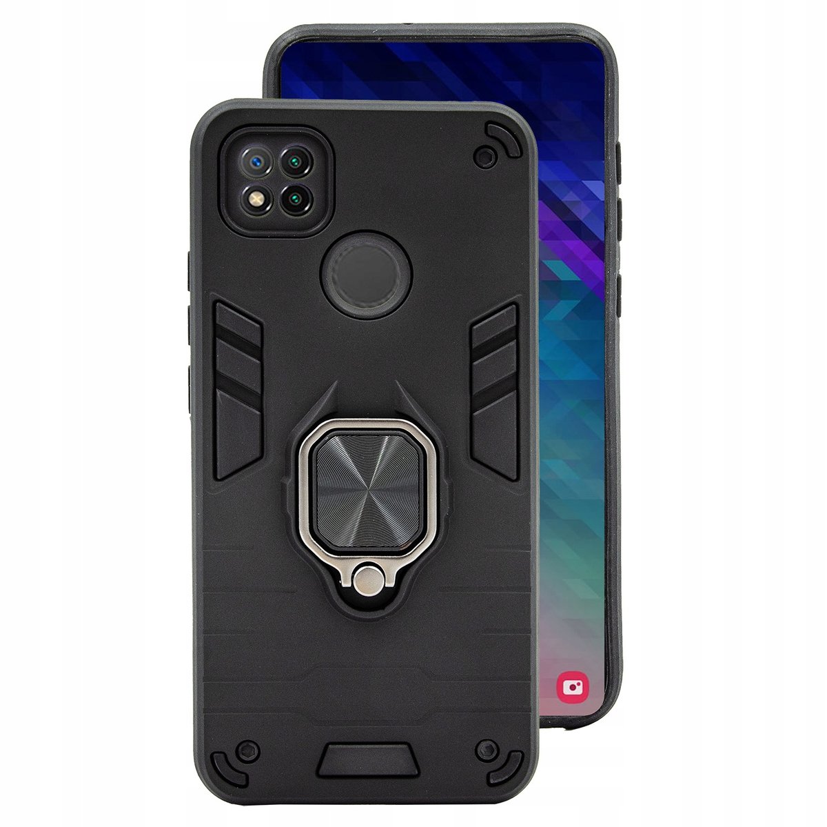 Etui Pancerne Do Xiaomi Redmi 9C Czarne Obudowa Armor Holder Ring Case