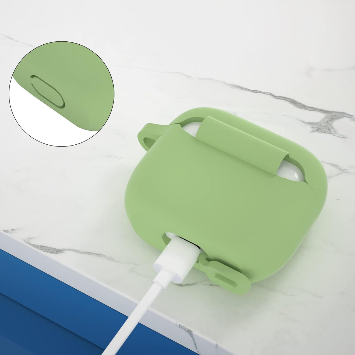 Wyposażone w praktyczną zaślepkę, etui skutecznie chroni wejście do ładowania przed kurzem, zanieczyszczeniami i przypadkowym zalaniem. Dzięki temu, Twoje AirPods są zabezpieczone na każdym etapie.