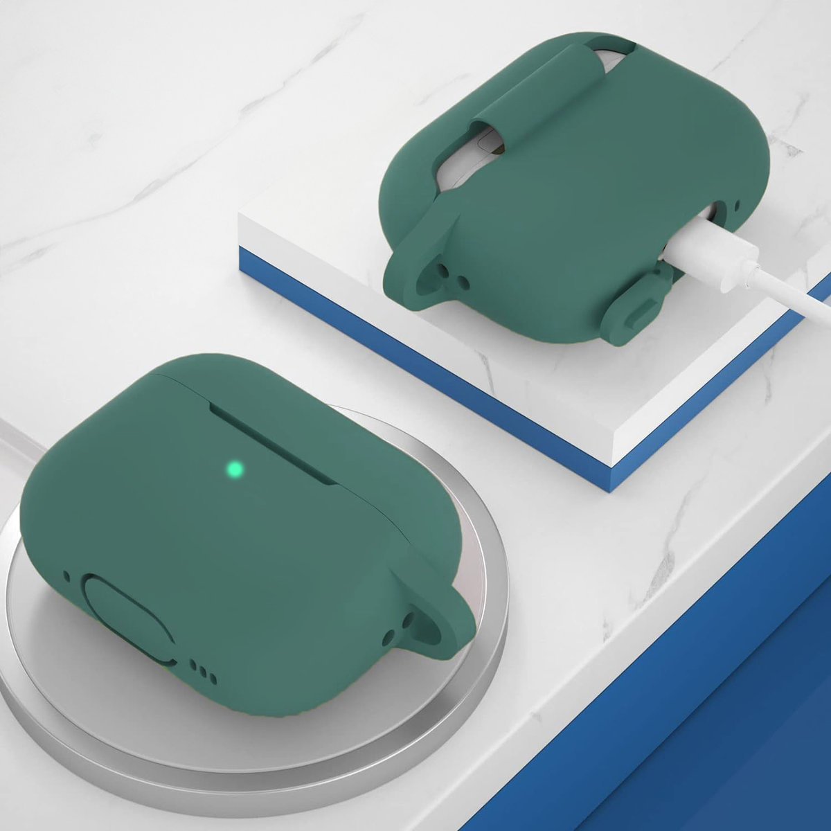Elastyczny i trwały silikon chroni Twoje AirPods Pro 1/2 przed uszkodzeniami mechanicznymi. To również przyjemne w dotyku rozwiązanie, które doskonale leży w dłoni.