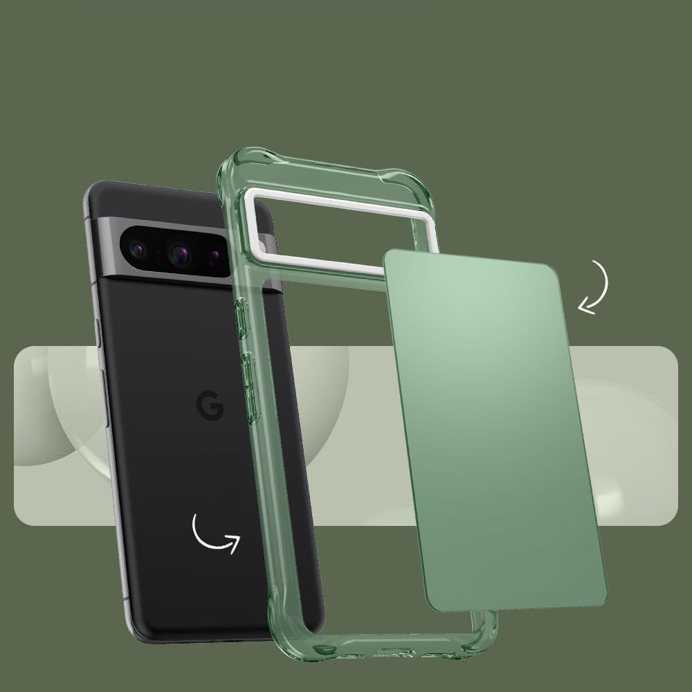 Spigen Cyrill Ultra Sheerdo Google Pixel 8 ProWersja kolorystyczna: Kale (kolor etui: przezroczysto-zielony z białą obwódką wokół aparatów / plecki: półprzezroczysty/matowy)Materiał: ...