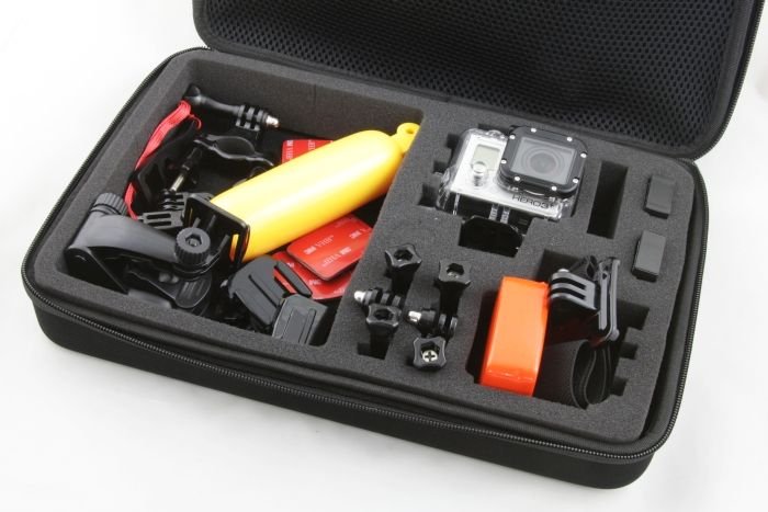 FUTERAŁ IDEALNY NA EKSTREMALNE WARUNKI Markowy produkt firmy XREC Wysokiej jakości wstrząsoodporny pokrowiec do wszystkich kamer GoPro, wykonany z wysokiej jakości materiałów i przeznaczony do przechowywania zarówno kamer sportowych jak i licznych akcesoriów dodatkowych. Pokrowiec firmy XREC to wysokiej jakości, sztywny futerał, wyłożony wewnątrz specjalną gąbką APE. Konstrukcja futerału jest oparta na technice, w myśl której tworzone są profesjonalne walizki służące do przechowywania sprzętu optycznego z najwyższej póki. Futerał jest wielokrotnie usztywniany, co gwarantuje jego wysoką odporność na urazy mechaniczne. Wewnętrzna pianka natomiast, w której umieszczamy kamerę oraz akcesoria zapewnia wysokie bezpieczeństwo i tłumi drgania, co gwarantuje w pełni bezpieczne przechowywanie sprzętu. Pokrowiec został wykonany: - na zewnątrz z twardego materiału tłumiącego wstrząsy i odpornego na urazy mechaniczne - wewnątrz wyłożony nylonowym poszyciem oraz pianką APE gwarantującą pełne bezpieczeństwo dla przechowywanych akcesoriów nawet w najtrudniejszych warunkach.