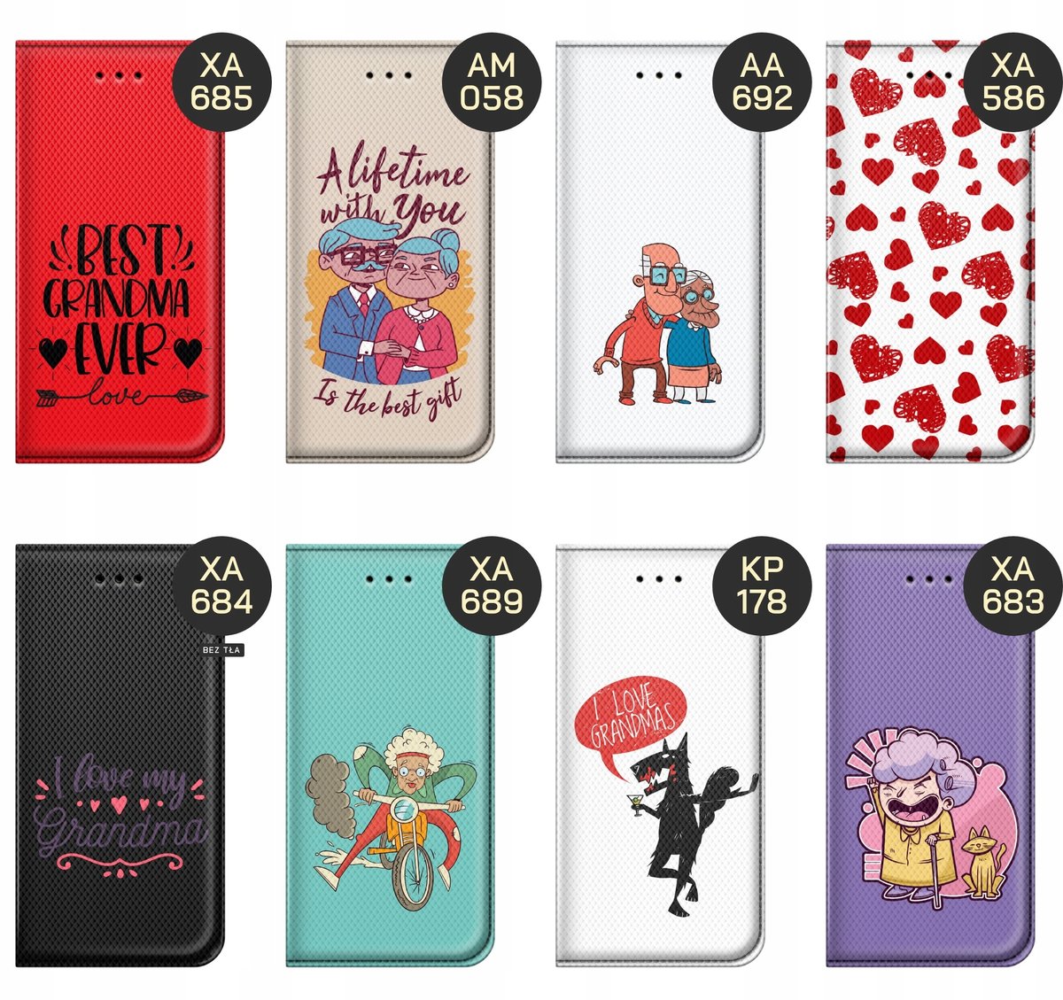 Set Dla babci to specjalna kolekcja wzorów, które będą świetnym prezentem dla ukochanych babć. Proponowane przez nas grafiki spodobają się każdej babci. Wybierz wzór, który skradnie serce babci, a my wydrukujemy go na etui jej telefonu.