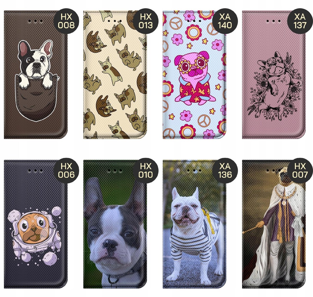 ETUI Z KLAPKĄ DO HUAWEI Y5 2019 WZORY MOPS BULDOG FRANCUSKI ANGIELSKI CASE