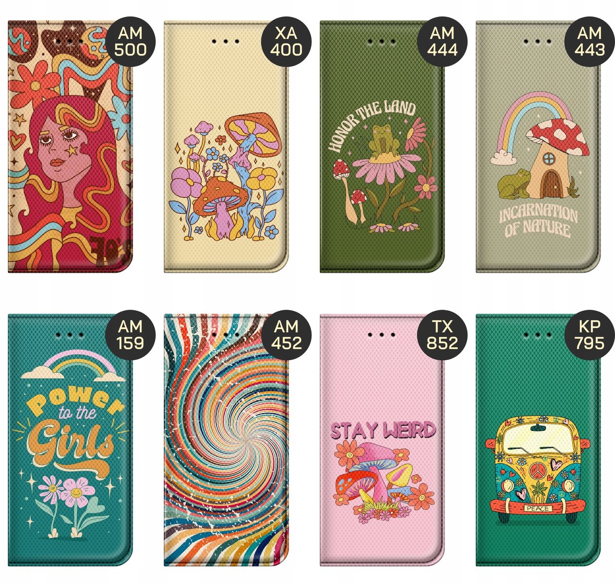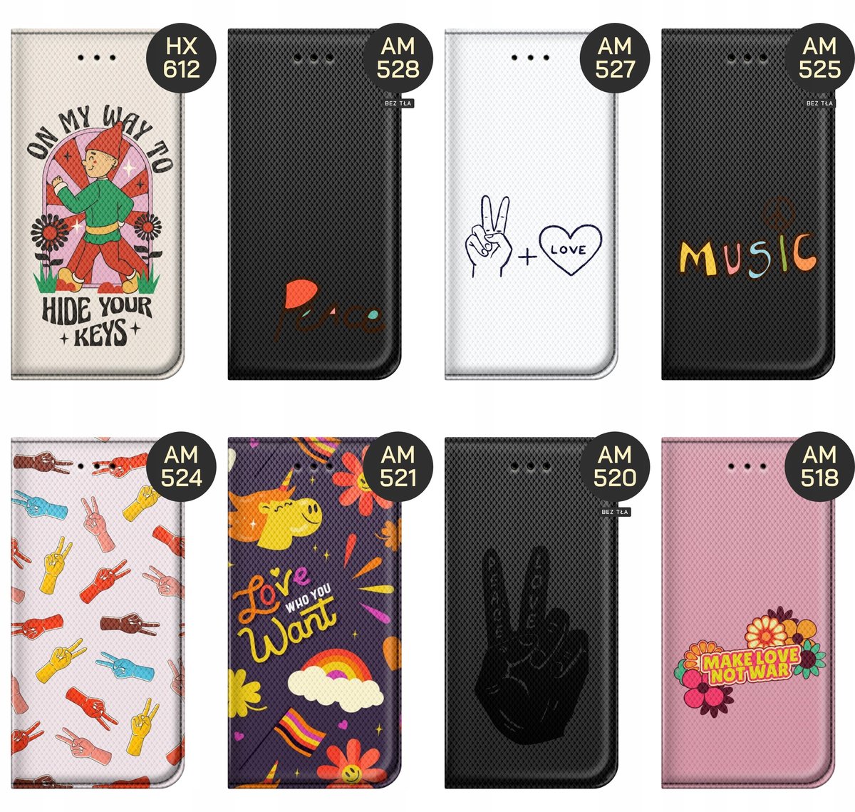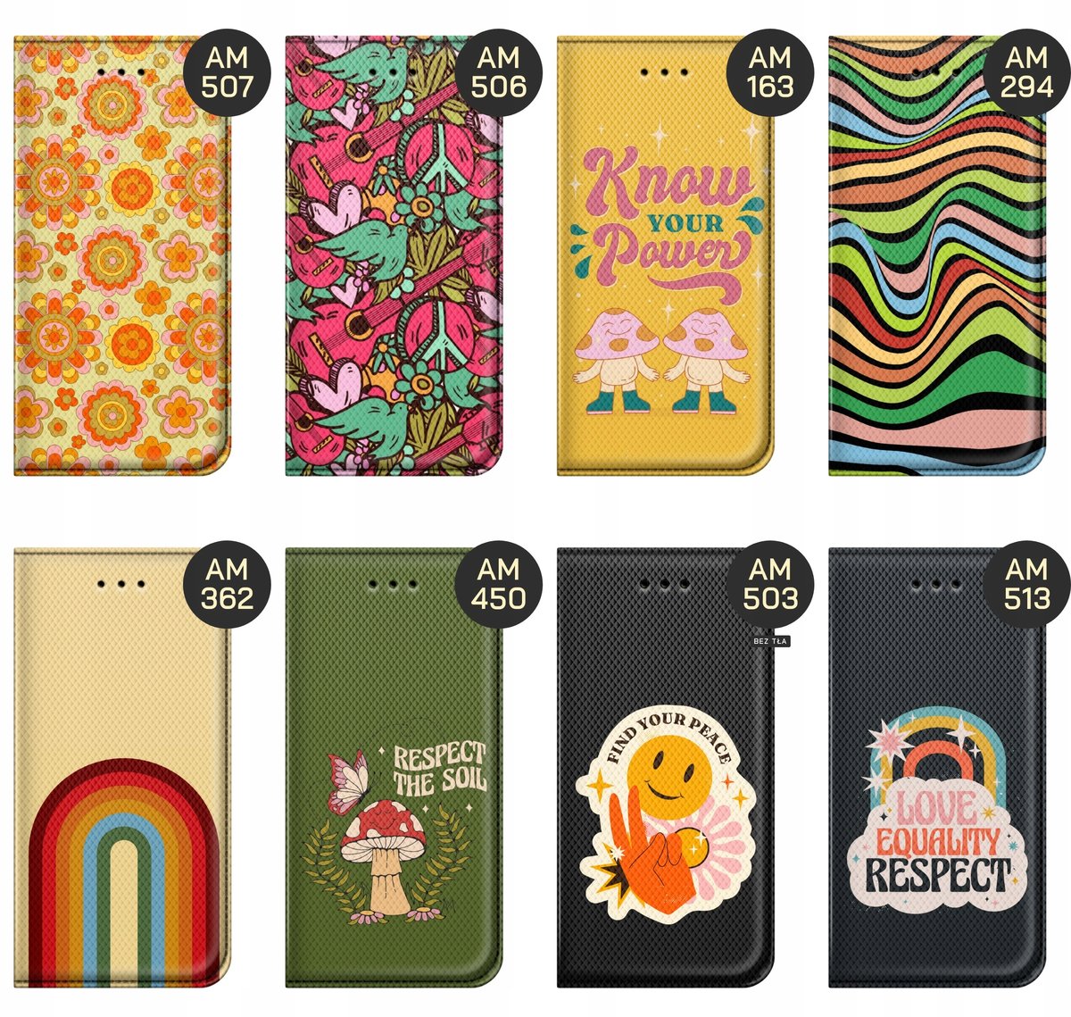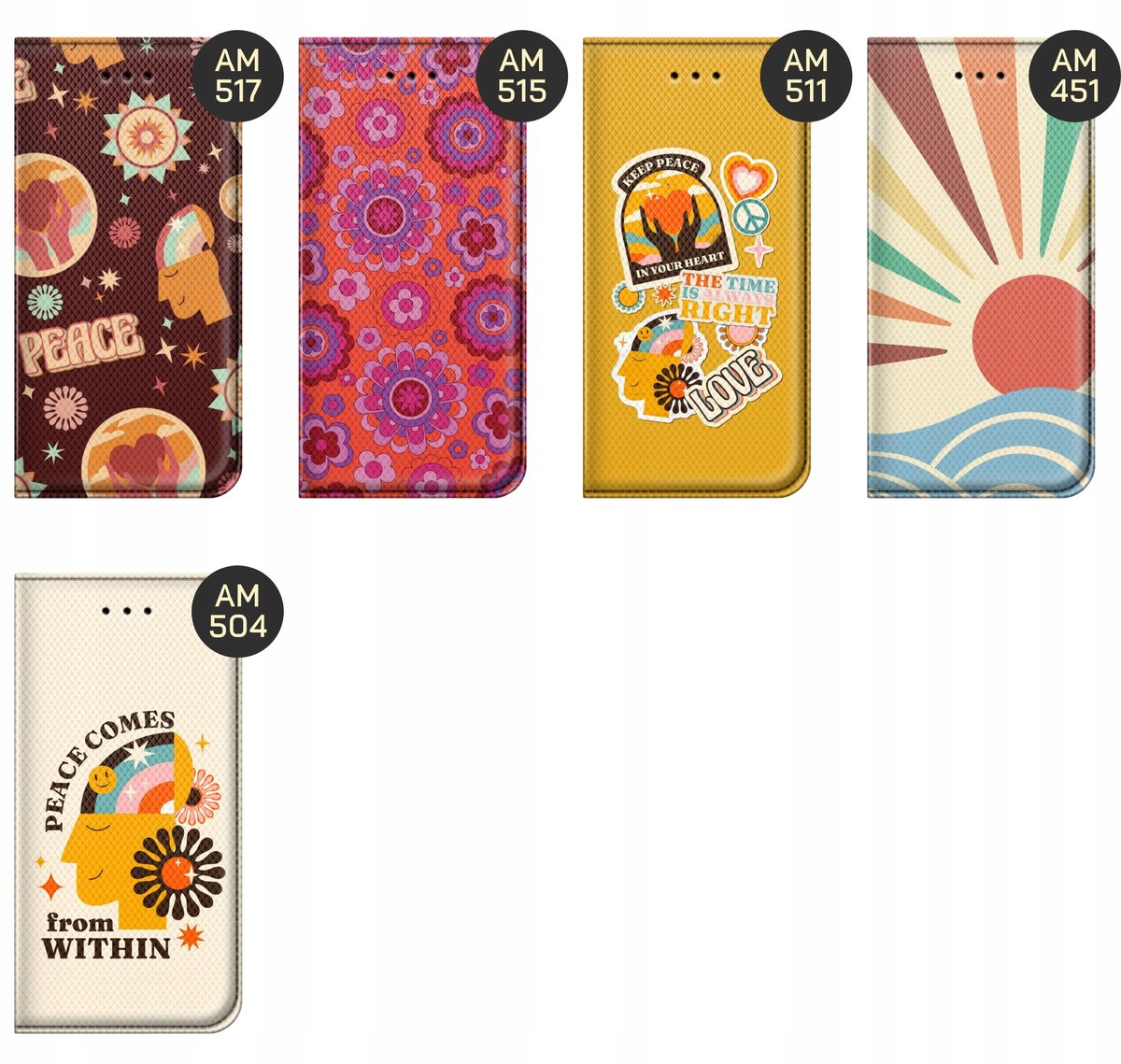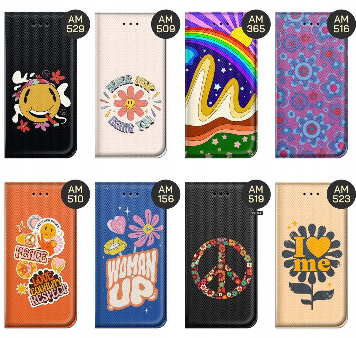 Set Hippie to styl nawiązujący ściśle do ruchu hippisowskiego z drugiej połowy lat 60. i początku lat 70. XX wieku. Hippisi, czy inaczej dzieci kwiaty, kojarzą nam się z odrzuceniem norm społecznych, życiem na bieżąco, a także z kwiatami i wszechobecnymi kolorami oraz hasłami takimi jak chociażby Peace & Love czy Make love, not war. Wybierz swój wzór, a my wydrukujemy go na etui Twojego telefonu.