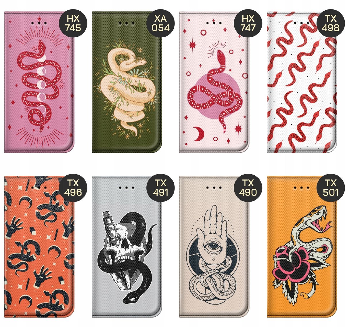 Set Wąż to specjalnie przygotowane grafiki dla miłośników tych gadów. Znajdziesz tutaj wzory z wężami i czaszkami, nawiązujące do chińskiego horoskopu i ezoteryki. Znajdź wzór, który spodoba Ci się najbardziej, a my wydrukujemy go na Twoje etui.