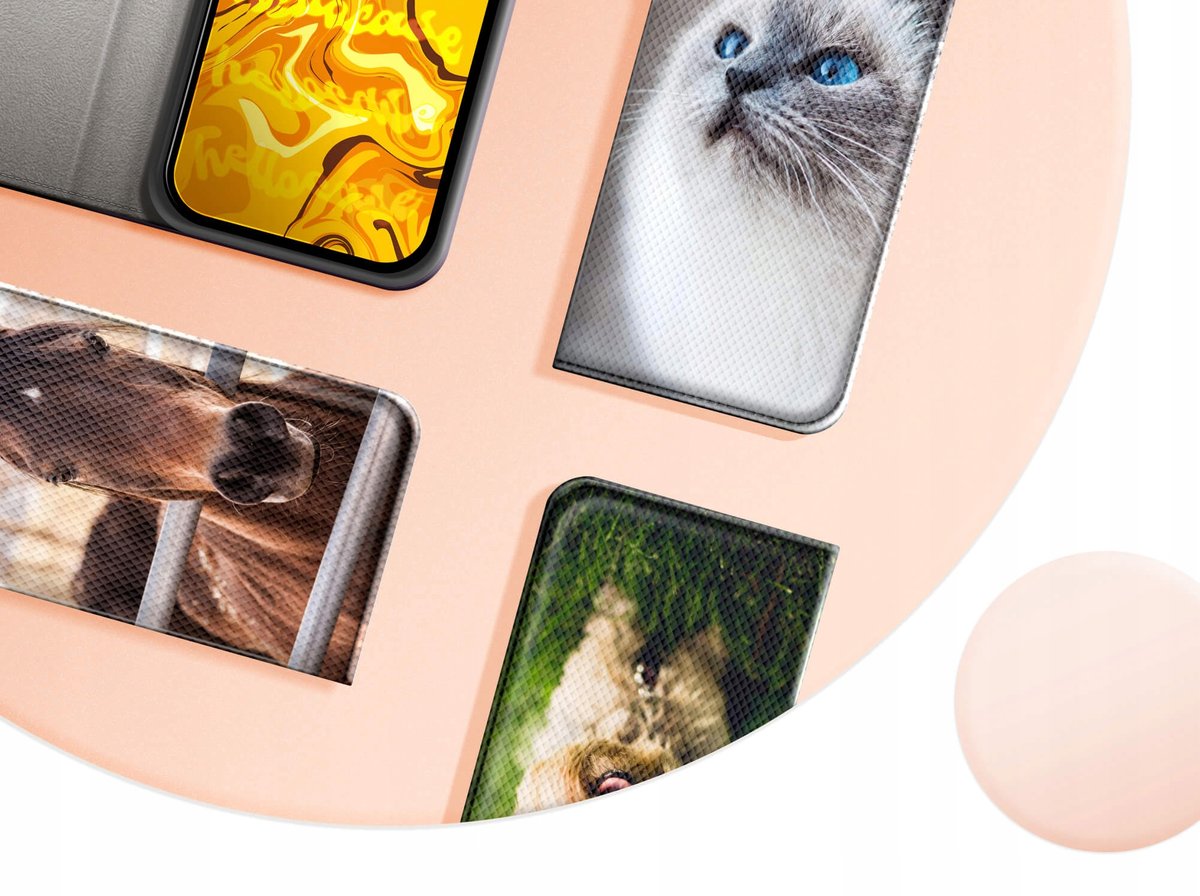 Nadruk na etui jest nanoszony na eleganckie, czarne etui z klapką, dzięki czemu Twój telefon posiada dodatkową ochronę dla ekranu. Telefon nadal zgrabnie leży w Twojej dłoni a Ty możesz cieszyć się wygodnym korzystaniem ze swojego smartfona!