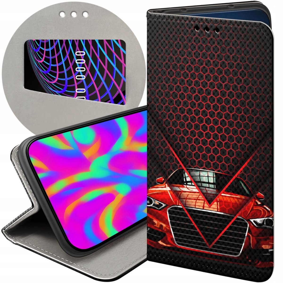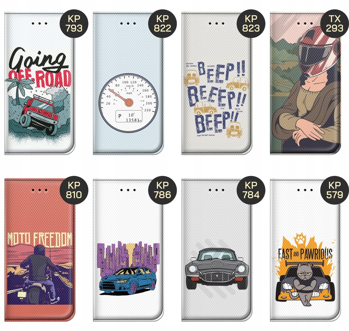 ETUI Z KLAPKĄ DO OPPO A38 4G WZORY AUTO MOTOR POJAZDY SAMOCHODY FUTERAŁ