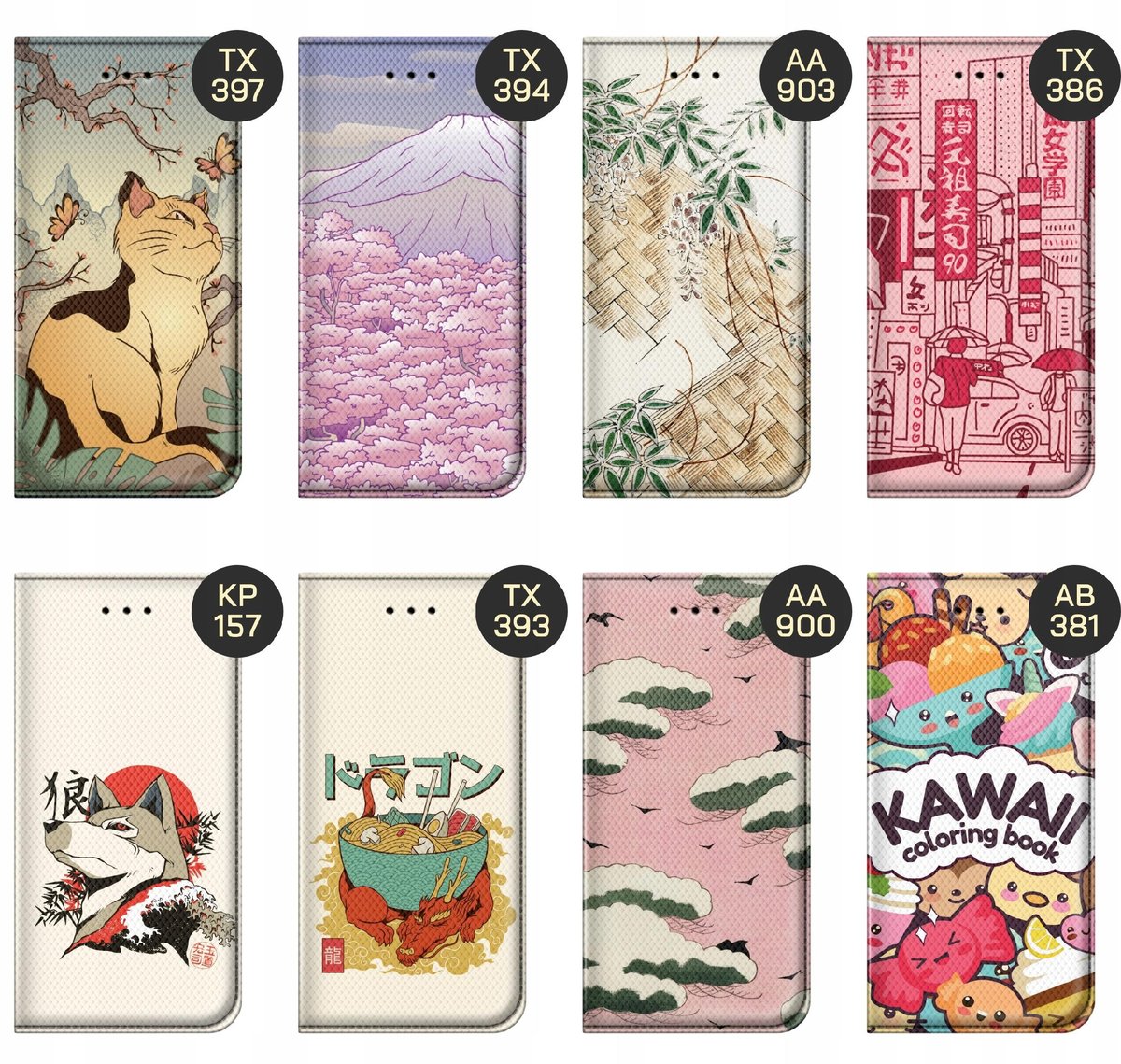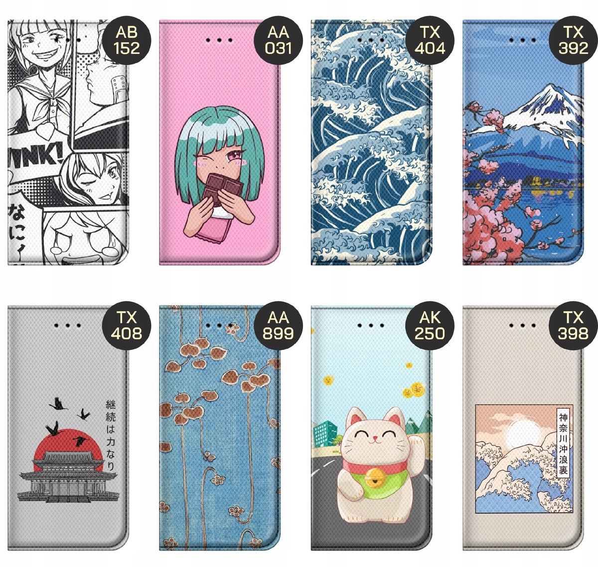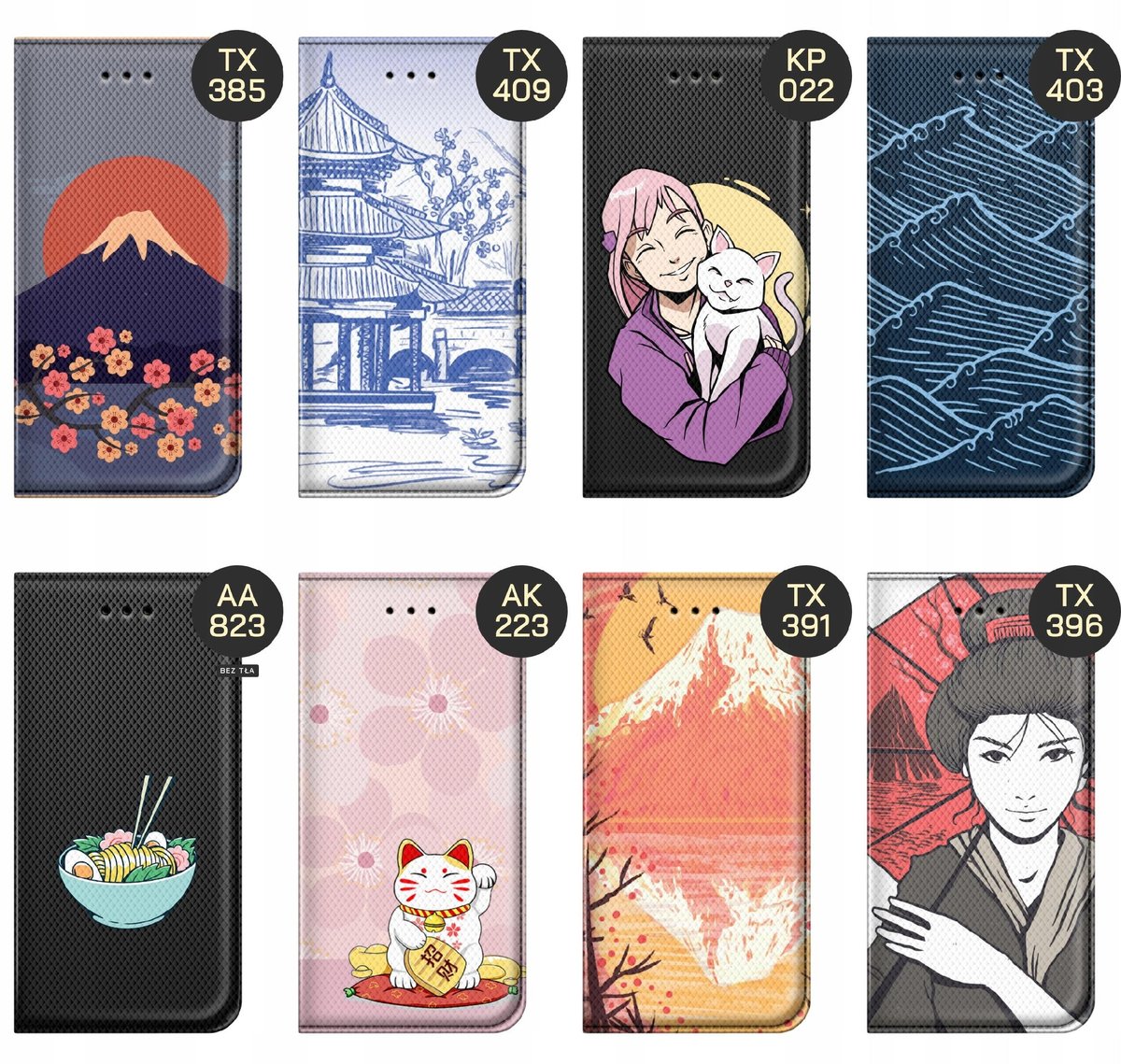 Set Japonia to zbiór grafik, które nawiązują do japońskiej kultury, sztuki i przyrody. Znajdziesz tutaj motyw Wielkiej Fali, autorstwa Hokusaia, górę Fudżi, gejsze czy koty, które zajmują kluczowe miejsce w tradycji japońskiej. Znajdź grafikę, które najbardziej Ci odpowiada, a my wydrukujemy ją na etui Twojego telefonu.