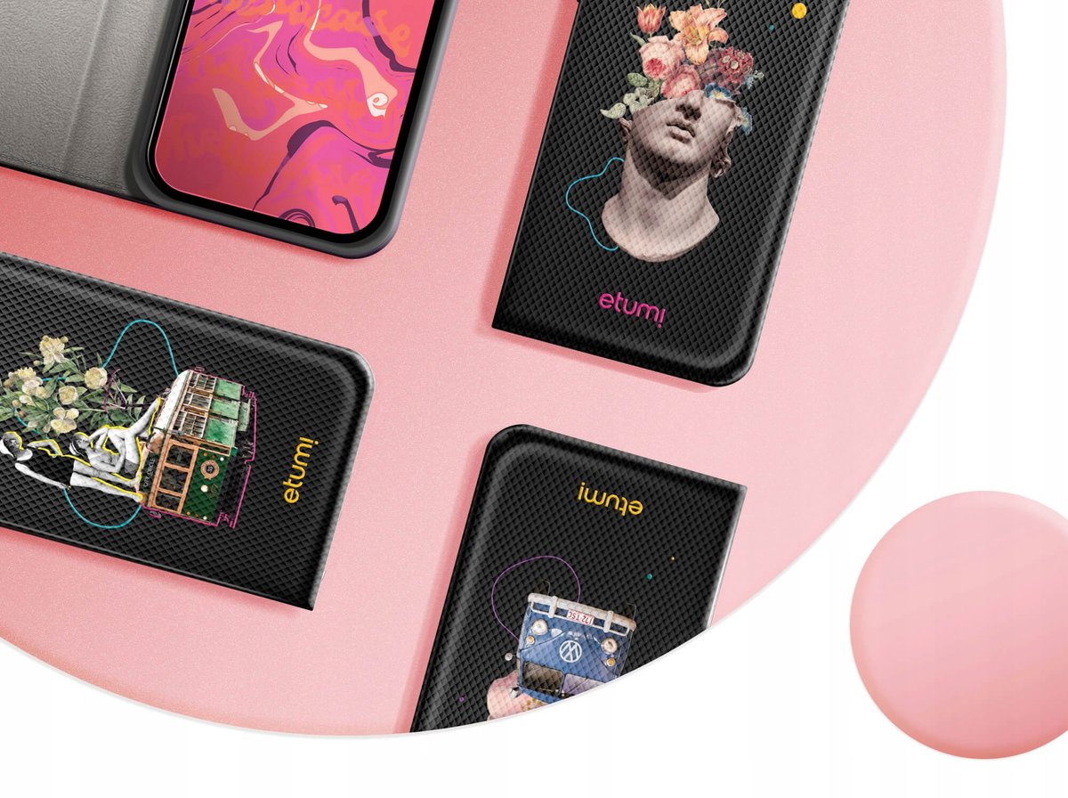Nadruk na etui jest nanoszony na eleganckie, czarne etui z klapką, dzięki czemu Twój telefon posiada dodatkową ochronę dla ekranu. Telefon nadal zgrabnie leży w Twojej dłoni a Ty możesz cieszyć się wygodnym korzystaniem ze swojego smartfona!