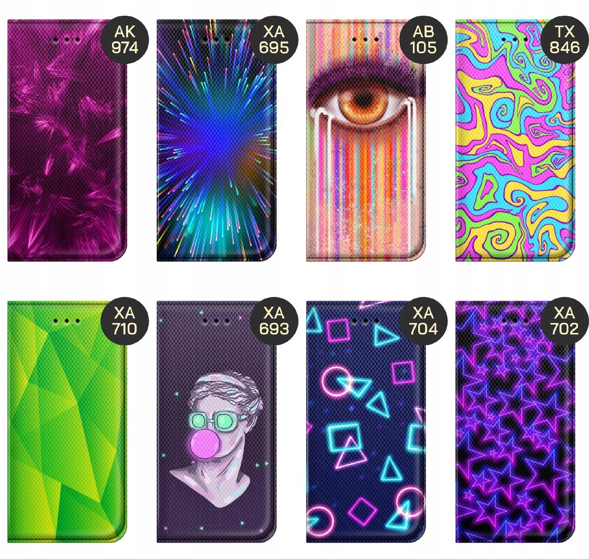Set Neonowe to wzory w mocnych, często jaskrawych kolorach w neonowym stylu. Wybierz grafikę, która przypadła Ci do gustu, a my wydrukujemy ją na etui Twojego telefonu.