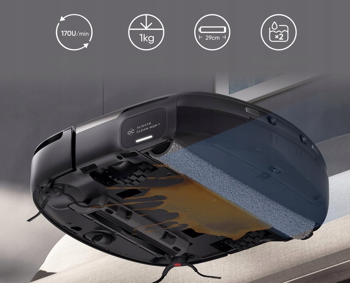 Tw��j eufy S1 Pro wyznacza nowe standardy w zakresie funkcji wycierania. Prezentujemy nasz innowacyjny samoczyszcz��cy mop Always Clean Mop. Obrotowy wa��ek mopa obraca si�� z pr��dko��ci�� 170 obr./min, co nie mo��e by�� osi��gni��te r��cznie, zapewniaj��c higieniczne czyszczenie pod����g.